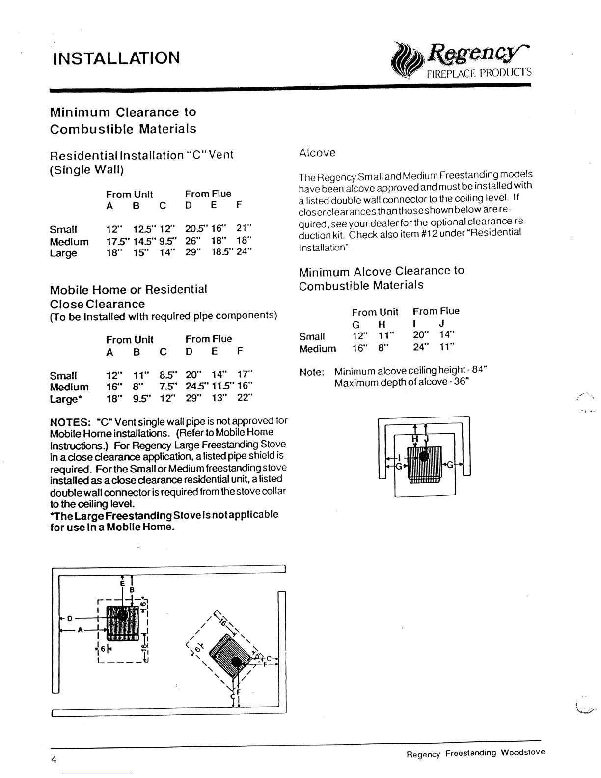 Regency R3 - Installation Guide; Installation Clearances; Residential Installation Clearances; Mobile Home;Residential Close Clearance