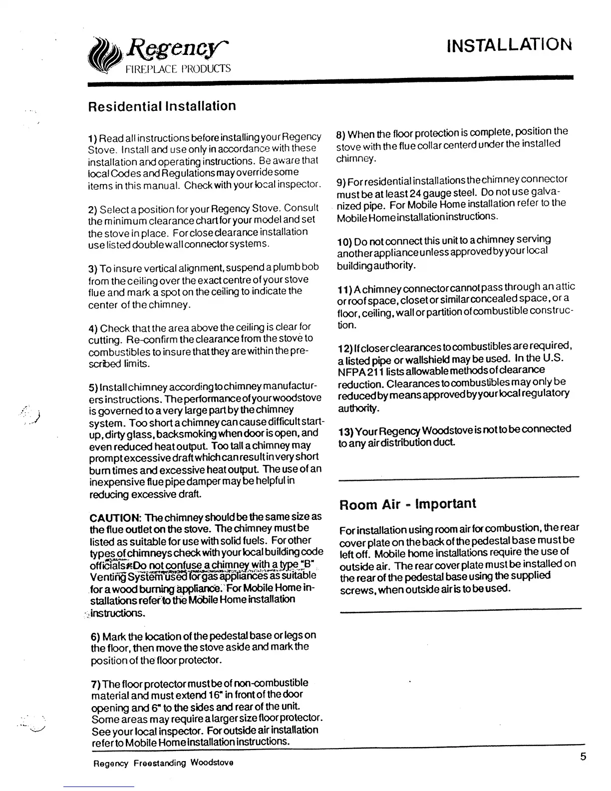 Regency R3 - Residential Installation Steps; Room Air Combustion