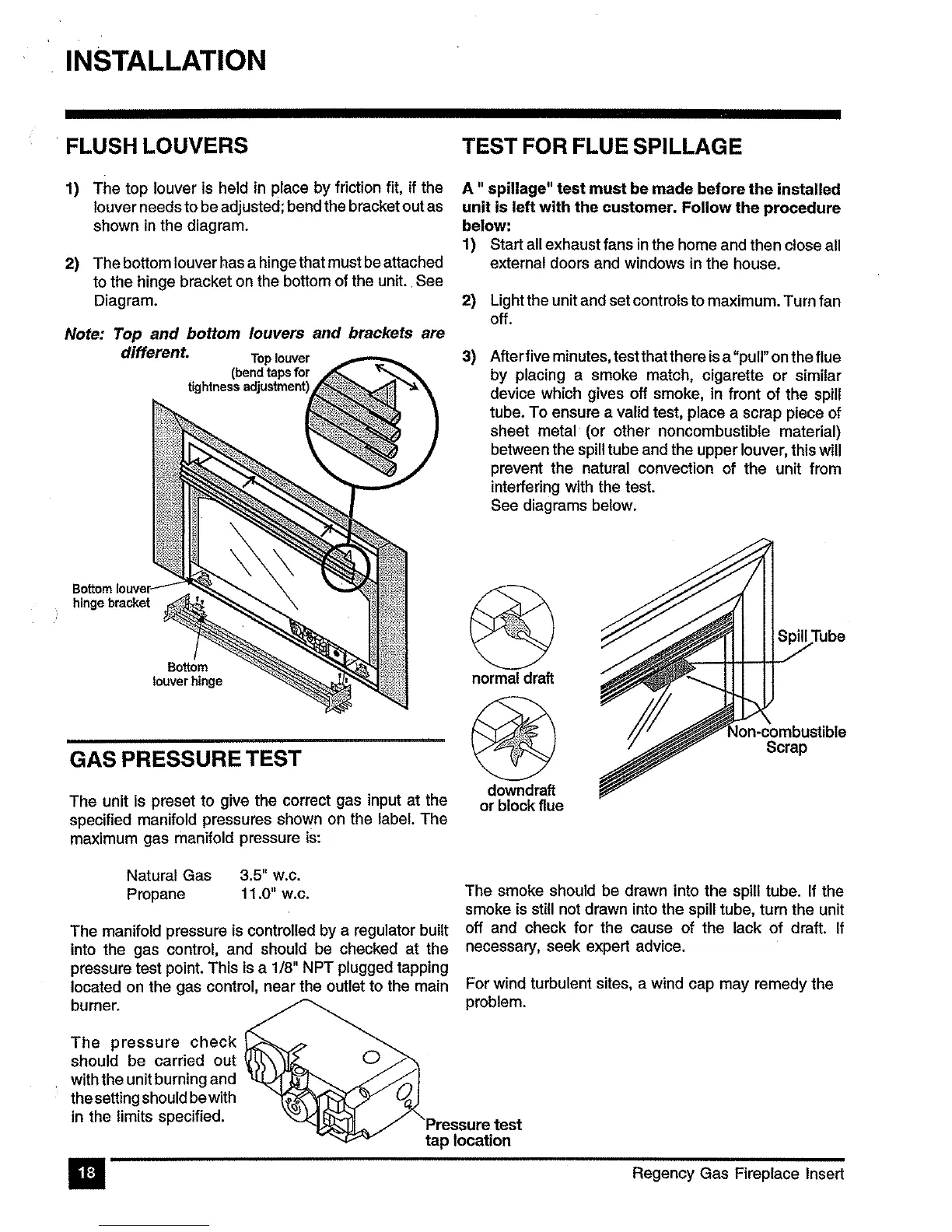 Regency U31-NG - Testing and Final Checks; Louvers and Pressure Test; Flue Spillage Test