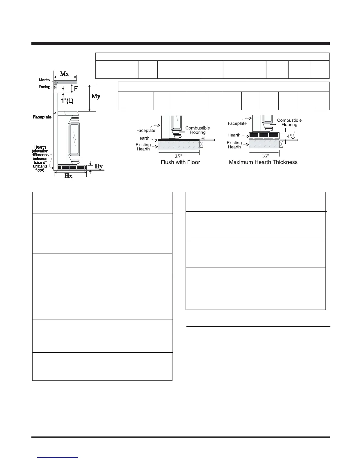 Note: A non-combustible mantel may be installed at a lower height if the framing is