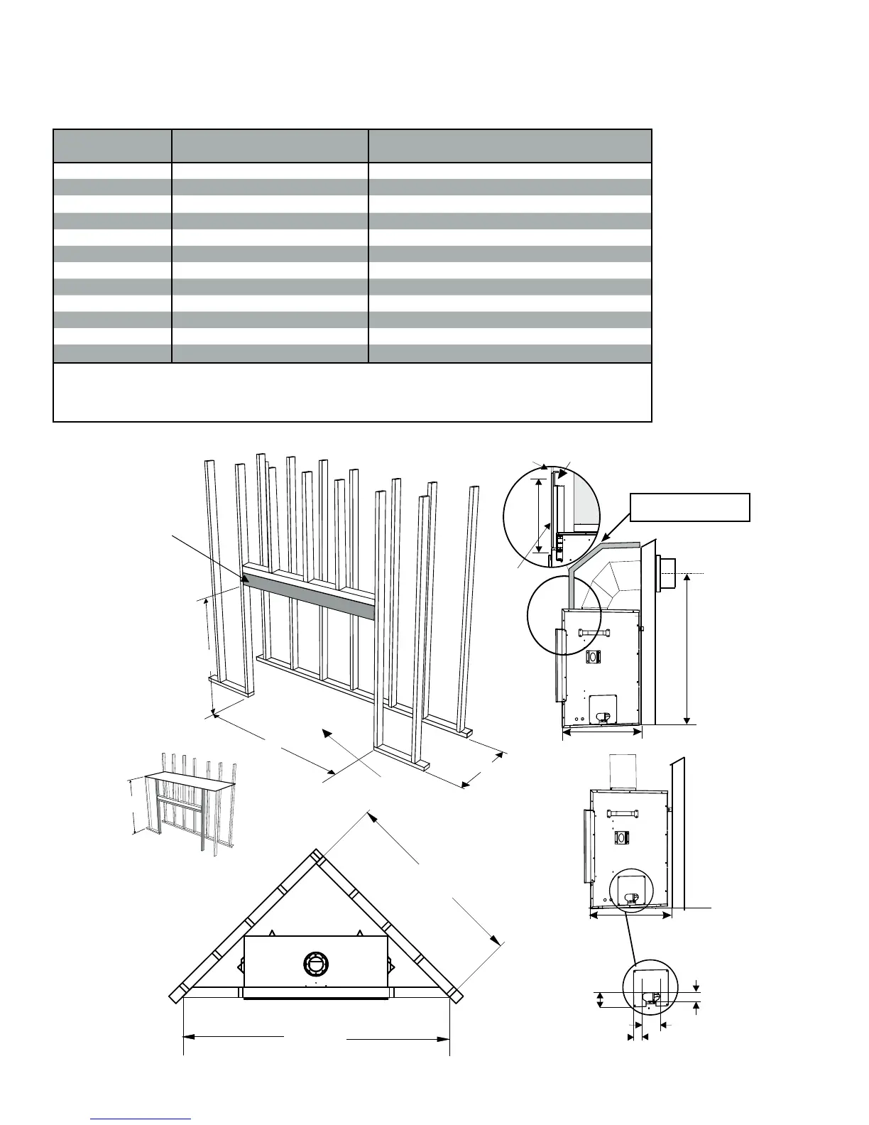* Framing depth measurement is noted with the nailing strips set as far forward on the rebox as possible.