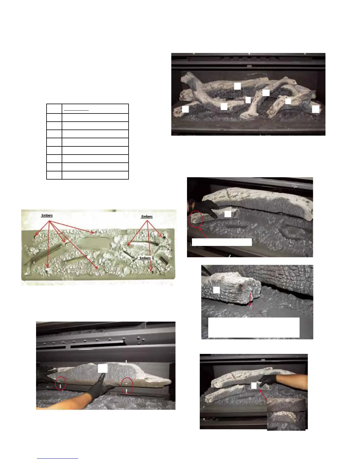 1. Install the supplied embers on exposed screw holes located on top of the