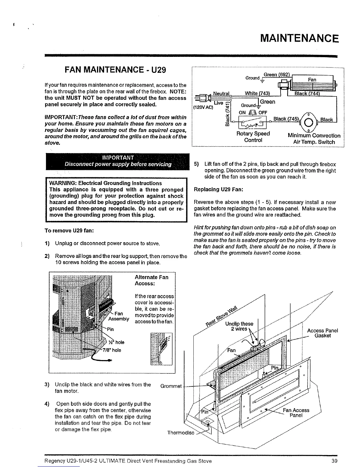 Regency ULTIMATE U29-LP1 - Fan Maintenance; Replacing U29 Fan
