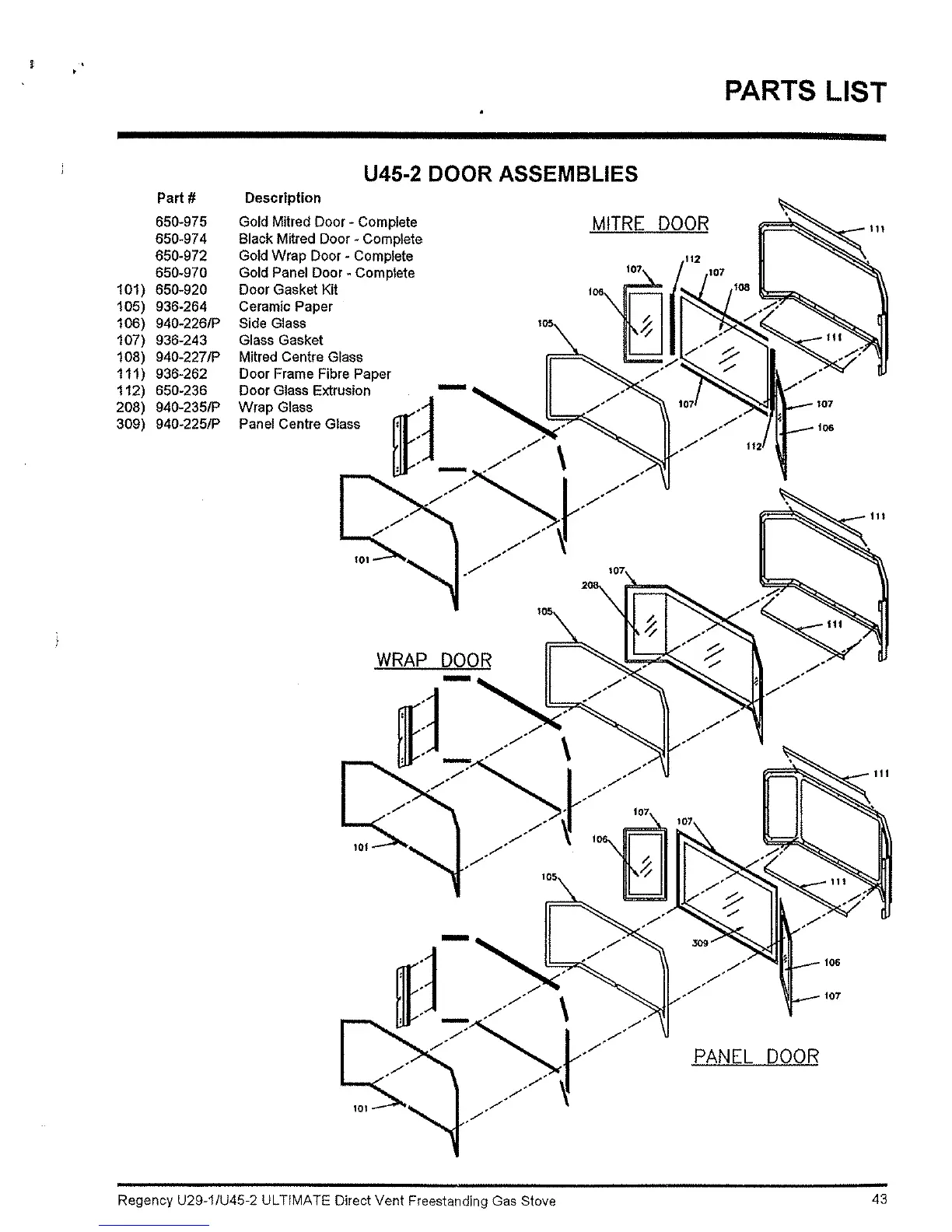 Regency ULTIMATE U29-LP1 - Door Assemblies