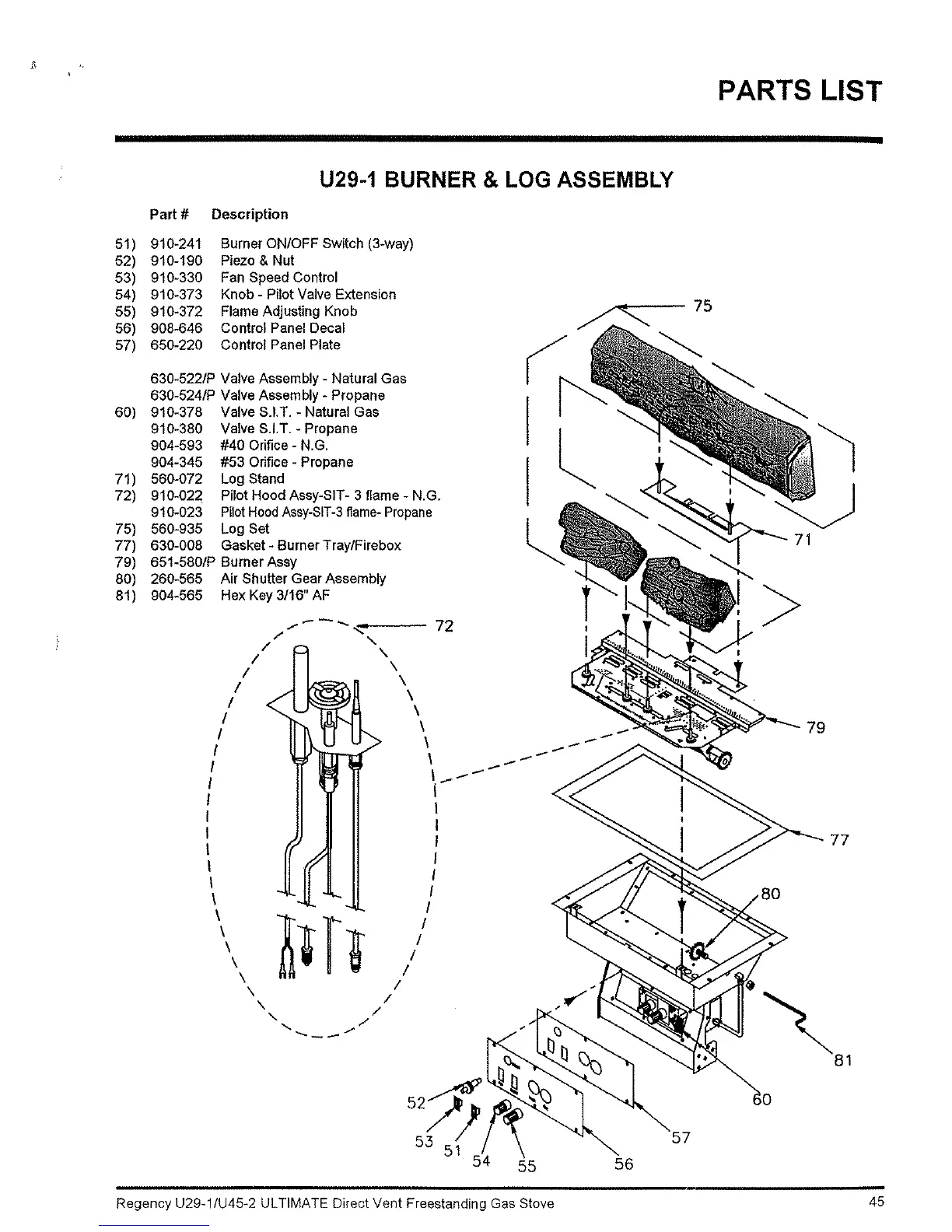 Regency ULTIMATE U29-LP1 - Burner & Log Assembly