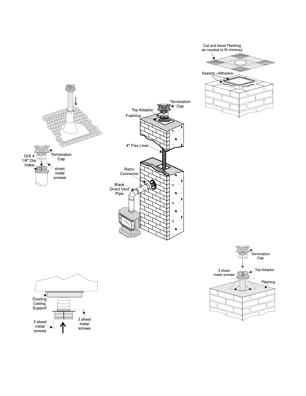 adaptor and into the chimney top. Insure