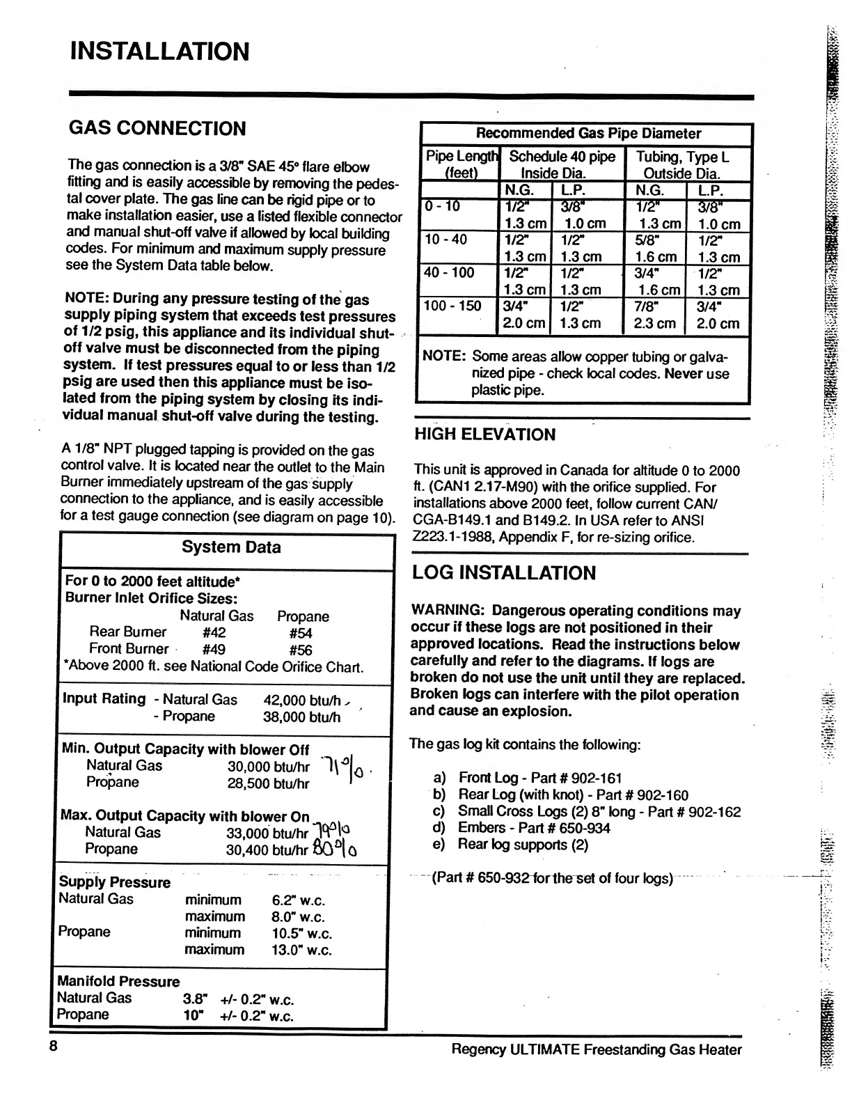 Regency ULTIMATE U41FS-LP - Gas Connection; High Elevation; Log Installation