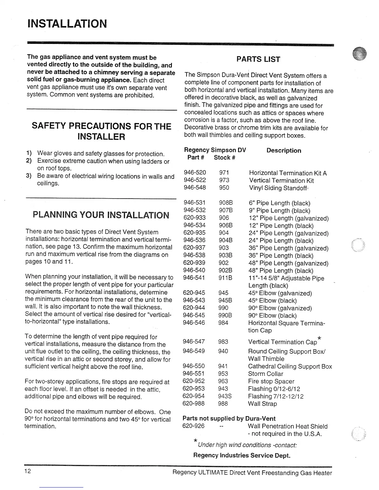 Regency Ultimate U45-NG - Safety Precautions for the Installer; Planning Your Installation