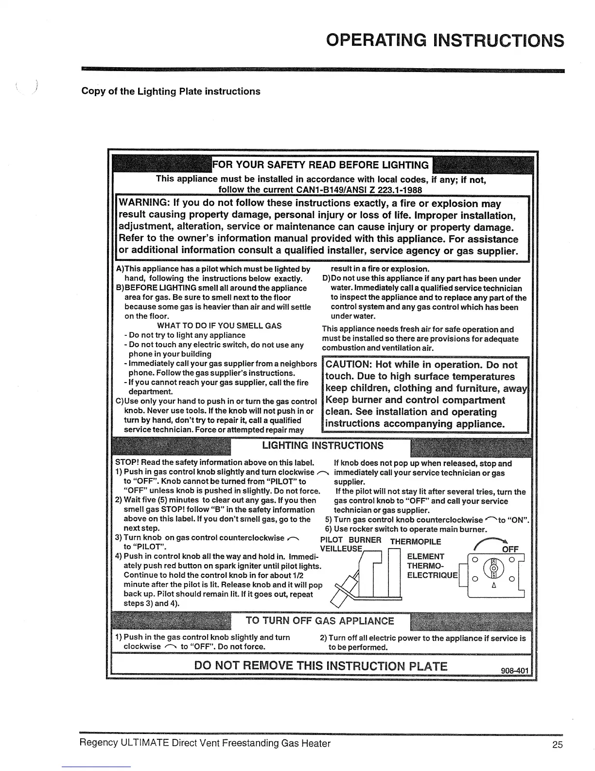 Regency Ultimate U45-NG - Copy of the Lighting Plate Instructions