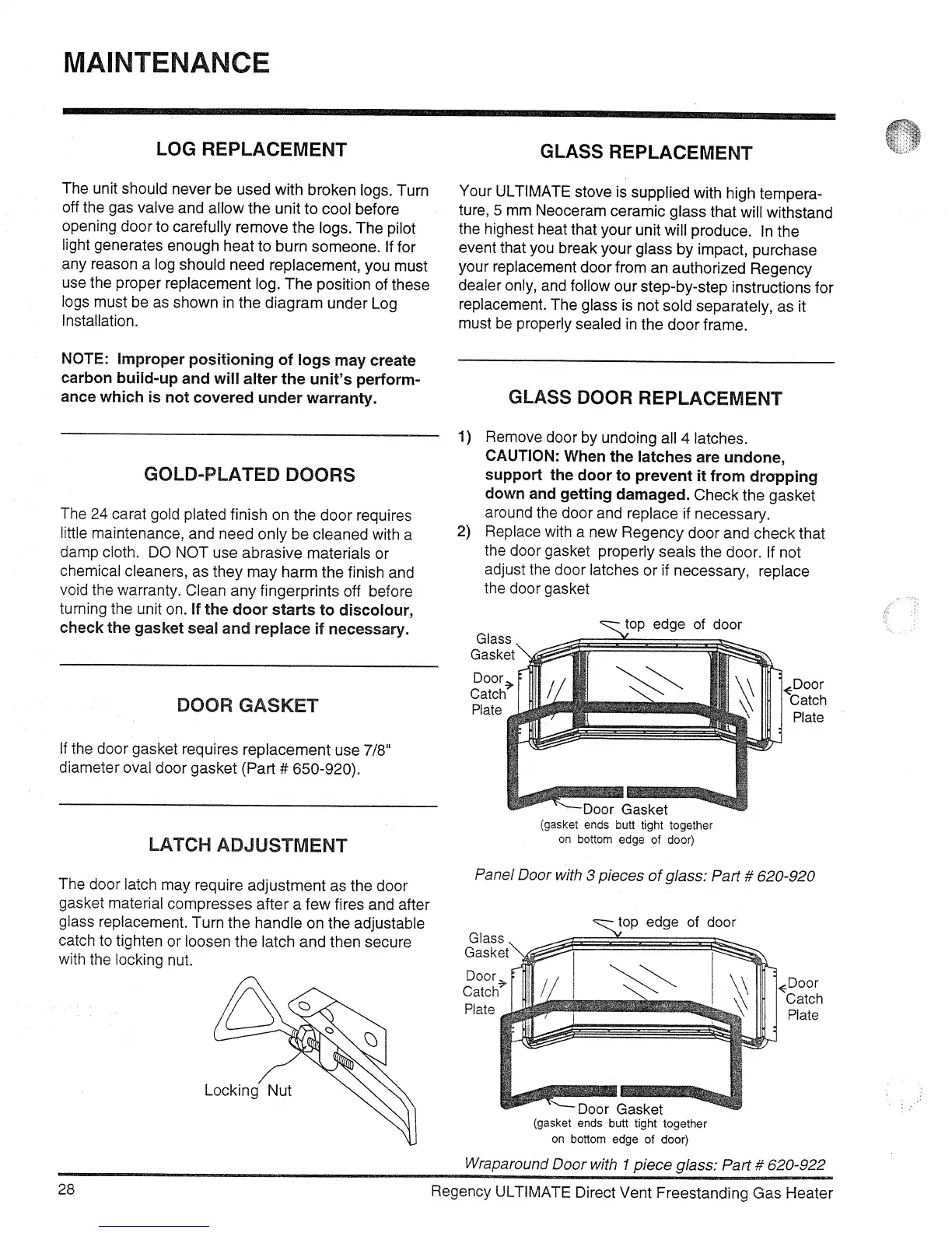 Regency Ultimate U45-NG - Log Replacement; Gold-Plated Doors; Door Gasket; Latch Adjustment