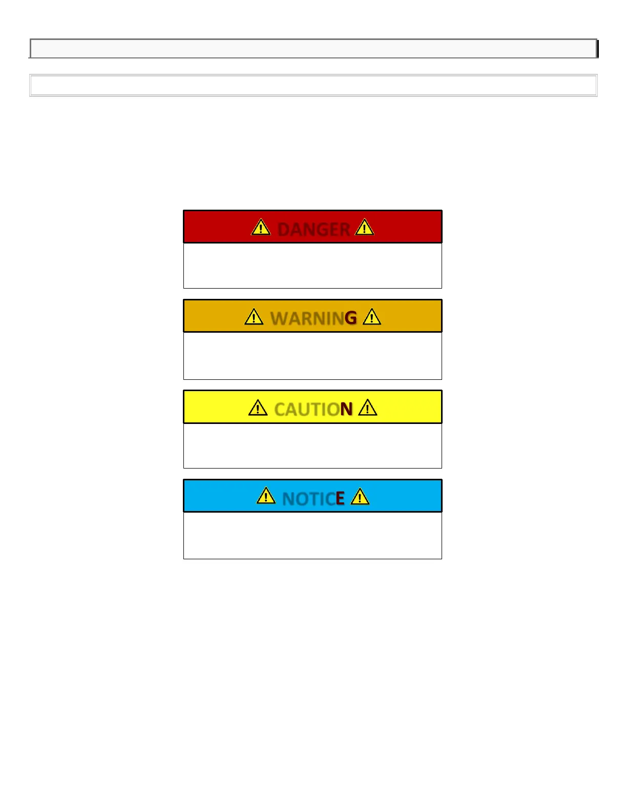 Specific items, procedures or instructions are identified with the key words DANGER, WARNING, CAUTION and NOTICE