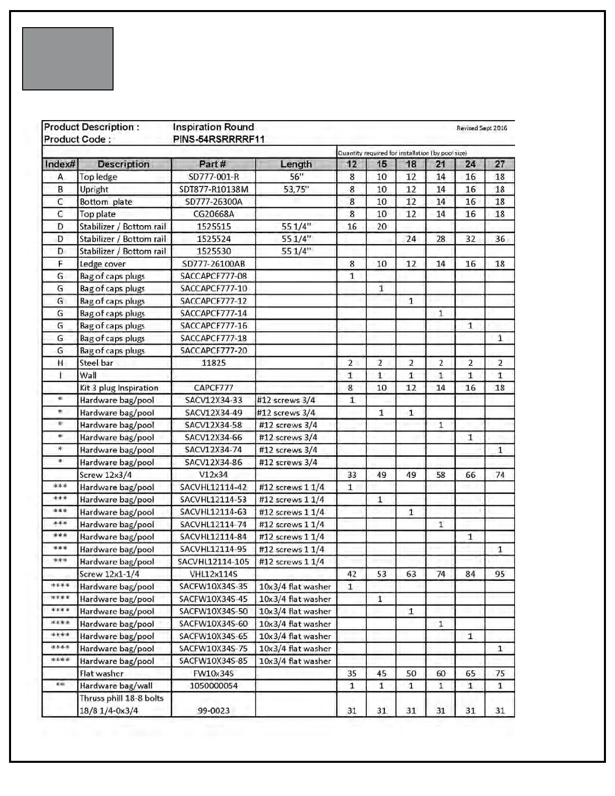 PARTS LISTING - CONTENT
