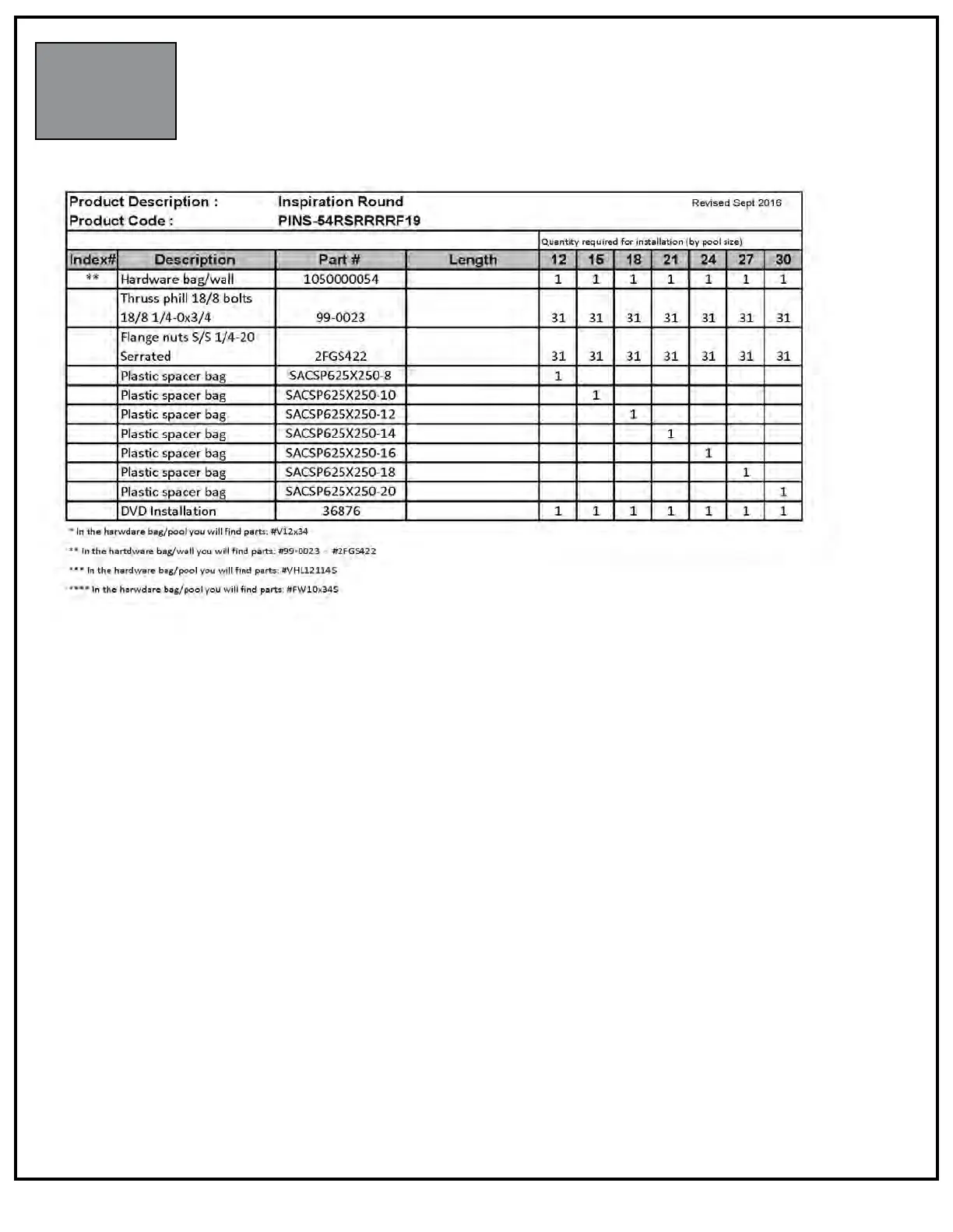 PARTS LISTING - CONTENT