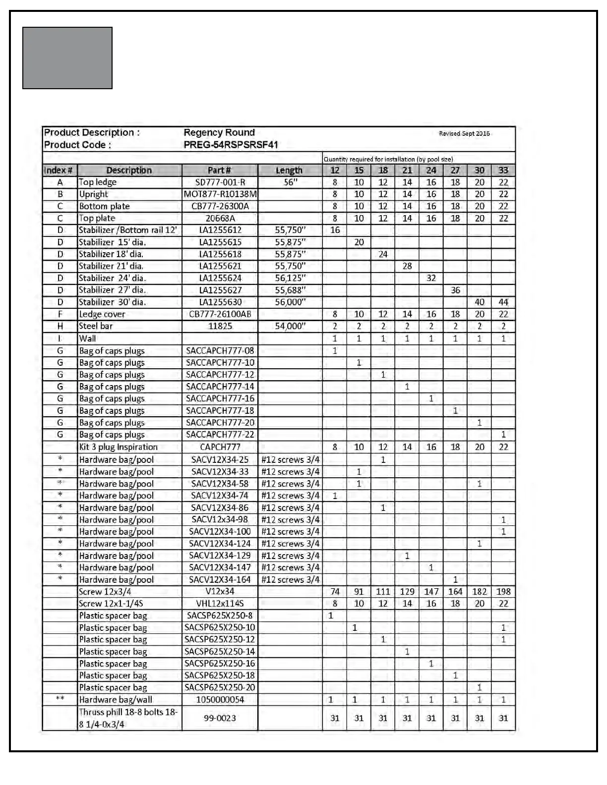 PARTS LISTING - CONTENT