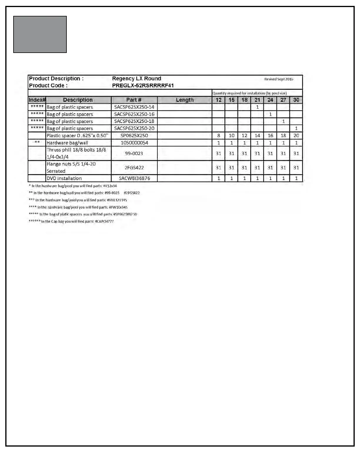 PARTS LISTING - CONTENT