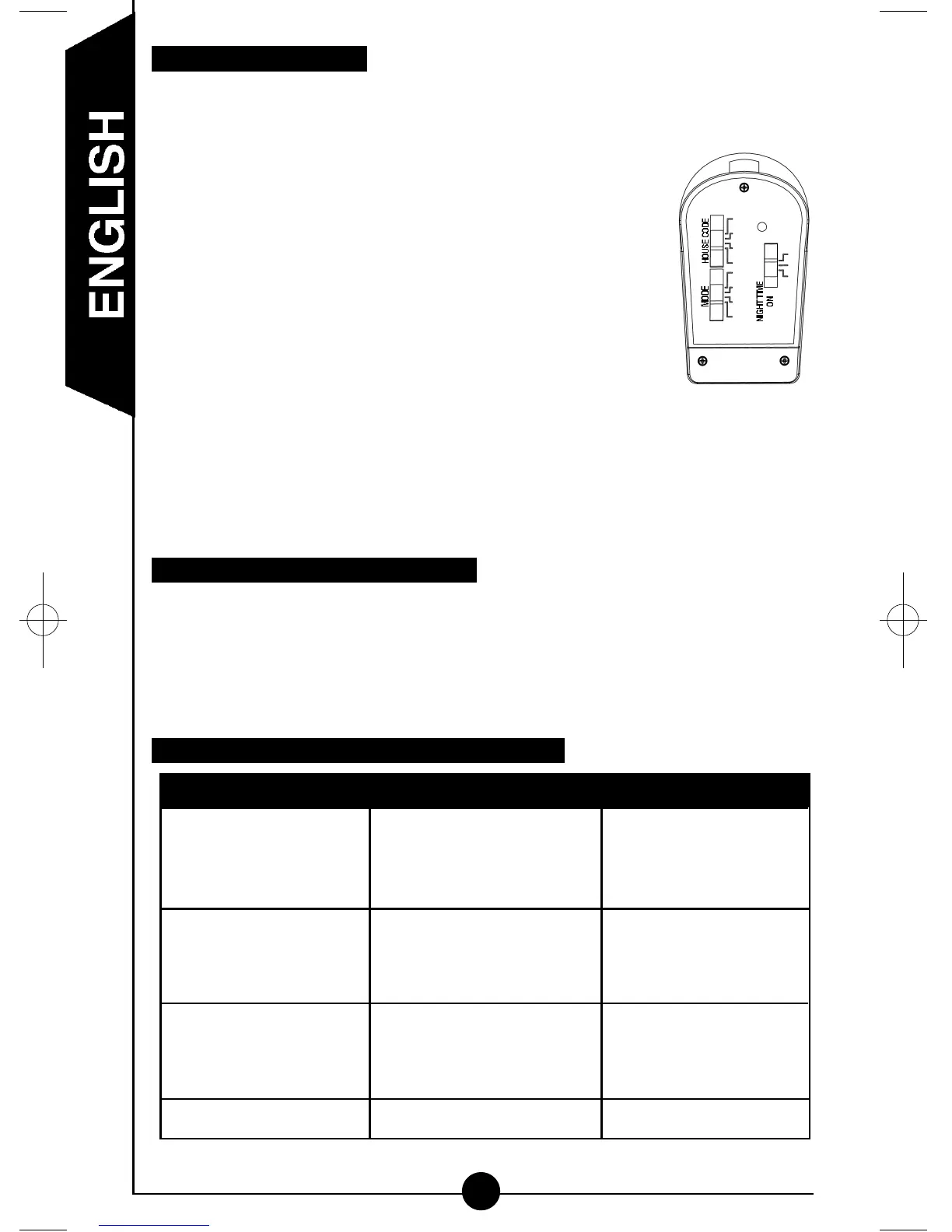 The sensor and indoor alarm/lamp module must be set to the same house code number
