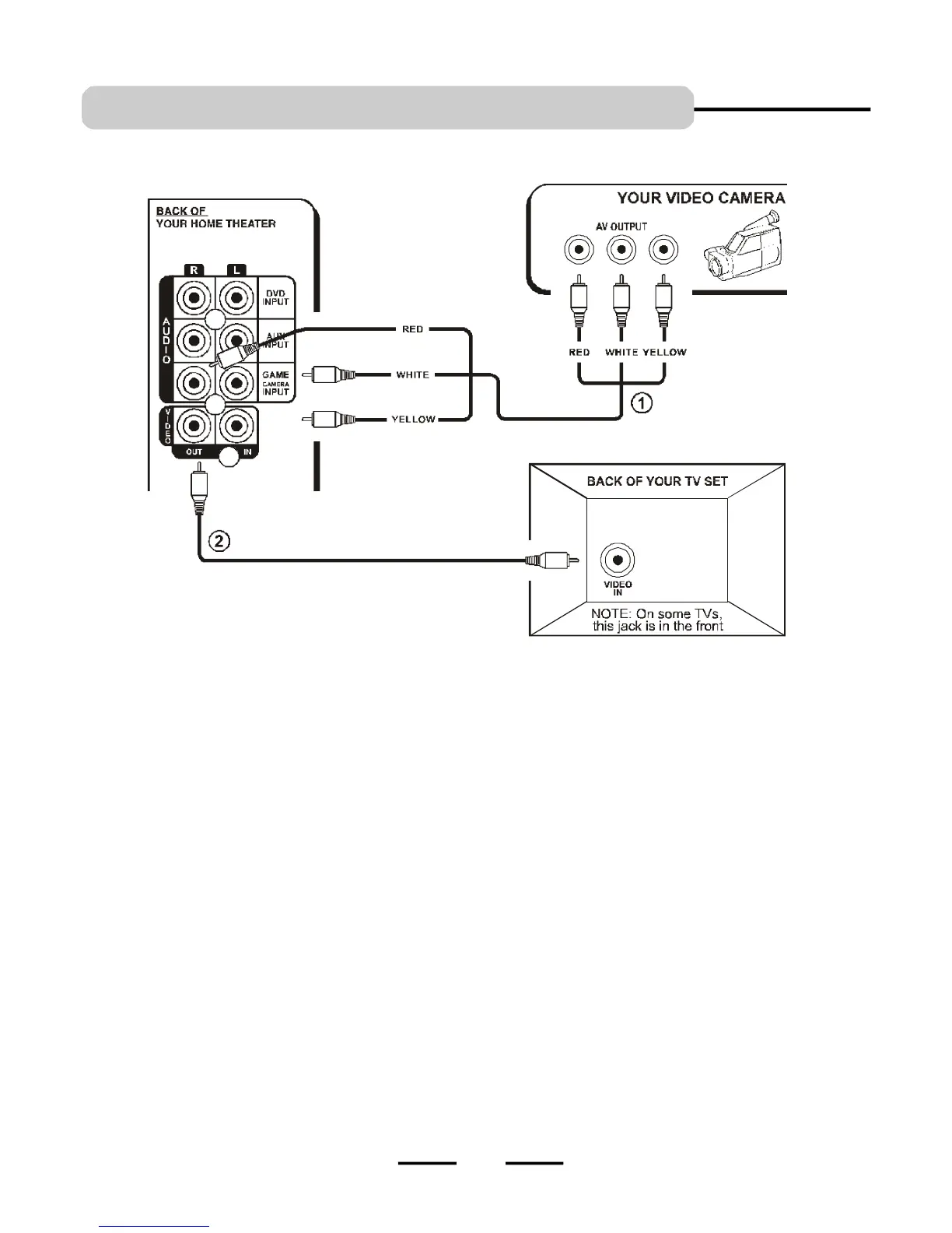 jacks on your VIDEO CAMERA, this will allow your CAMERA VIDEO’s sound to play through your HOME THEATER