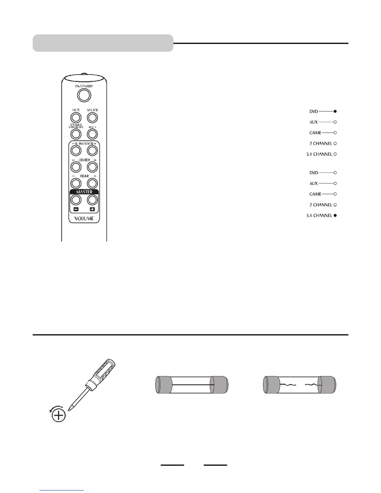 NOTE: The factory’s default input source is DVD with 5.1
