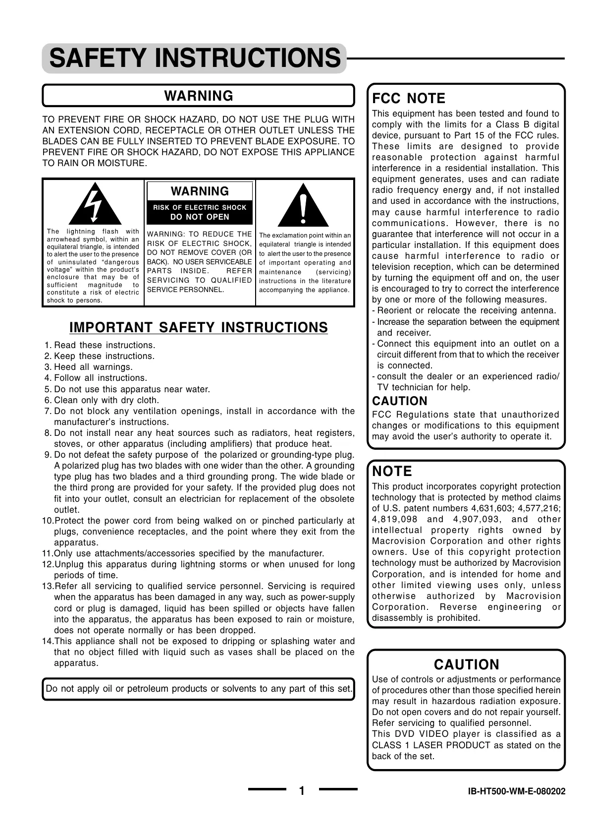 PREVENT FIRE OR SHOCK HAZARD, DO NOT EXPOSE THIS APPLIANCE