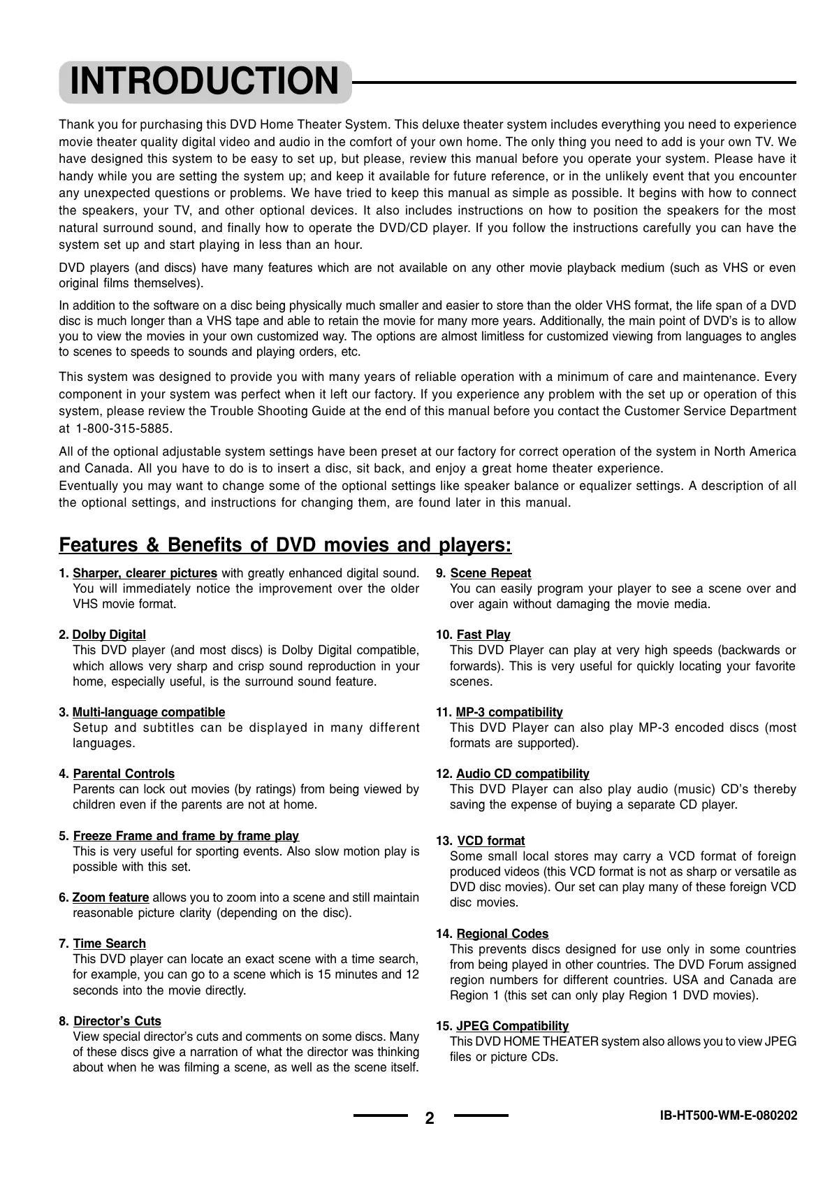 Thank you for purchasing this DVD Home Theater System. This deluxe theater system includes everything you need to experience