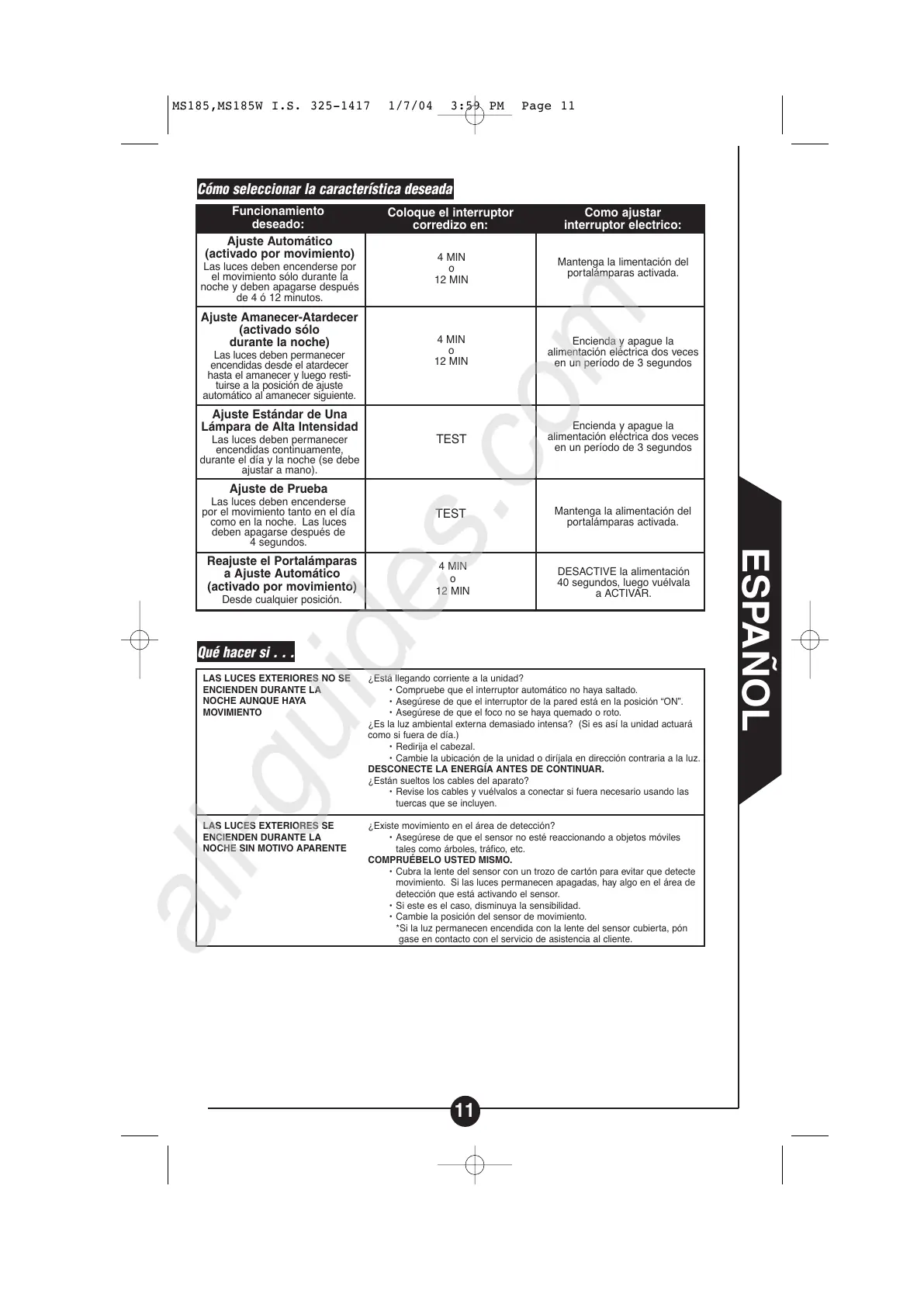 *Si la luz permanecen encendida con la lente del sensor cubierta, pón