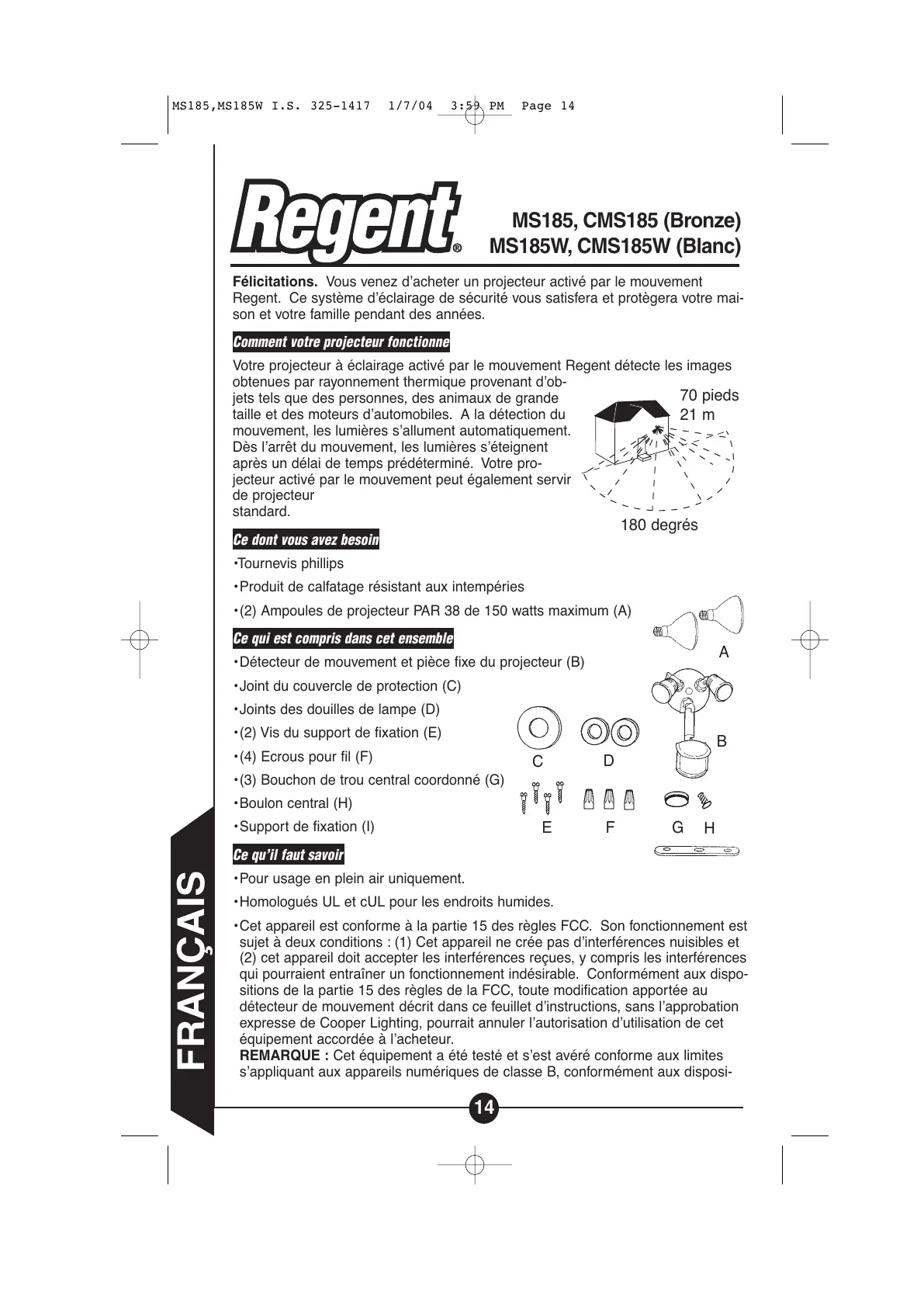 Regent. Ce système d’éclairage de sécurité vous satisfera et protègera votre mai-