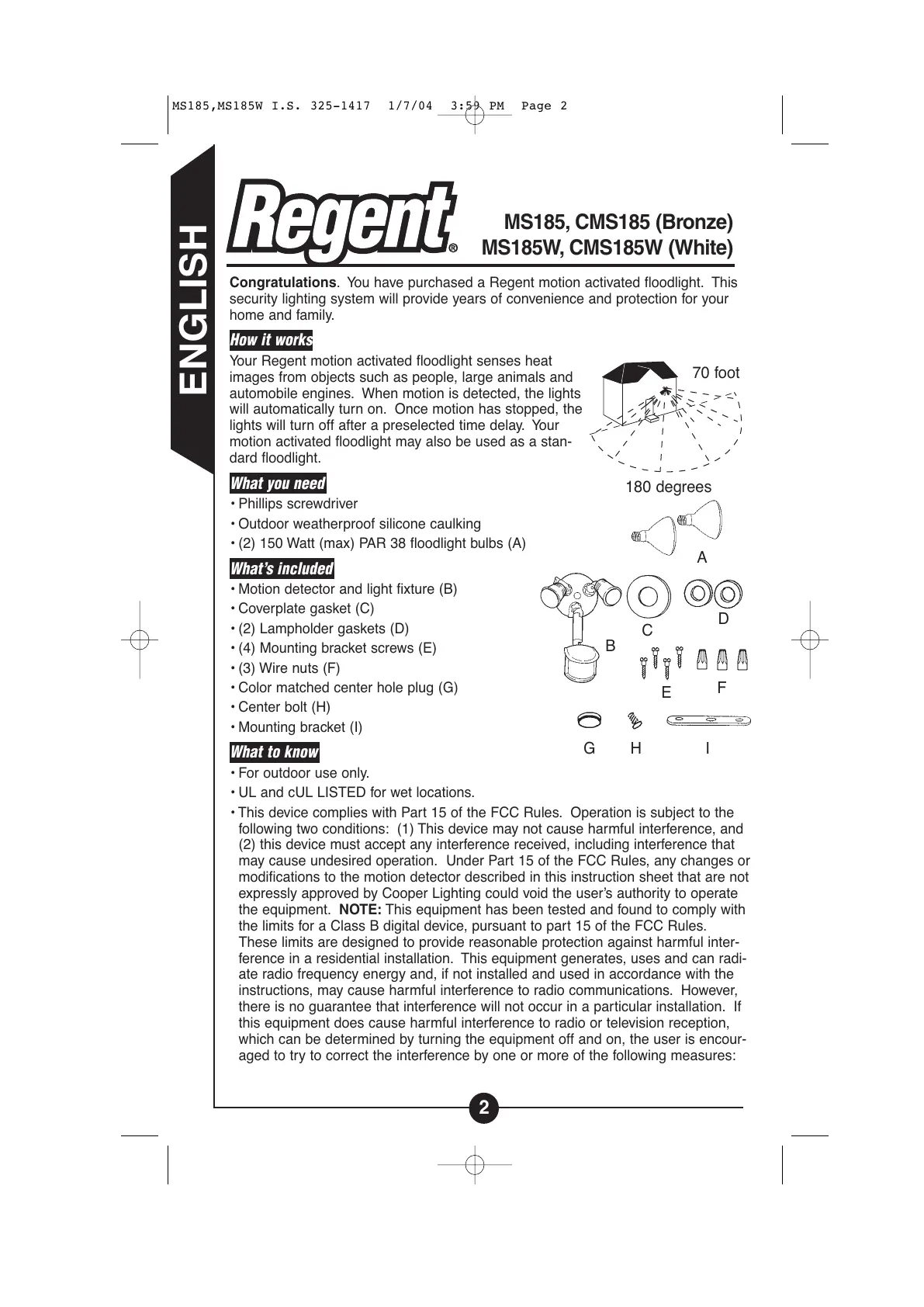 Congratulations. You have purchased a Regent motion activated floodlight. This