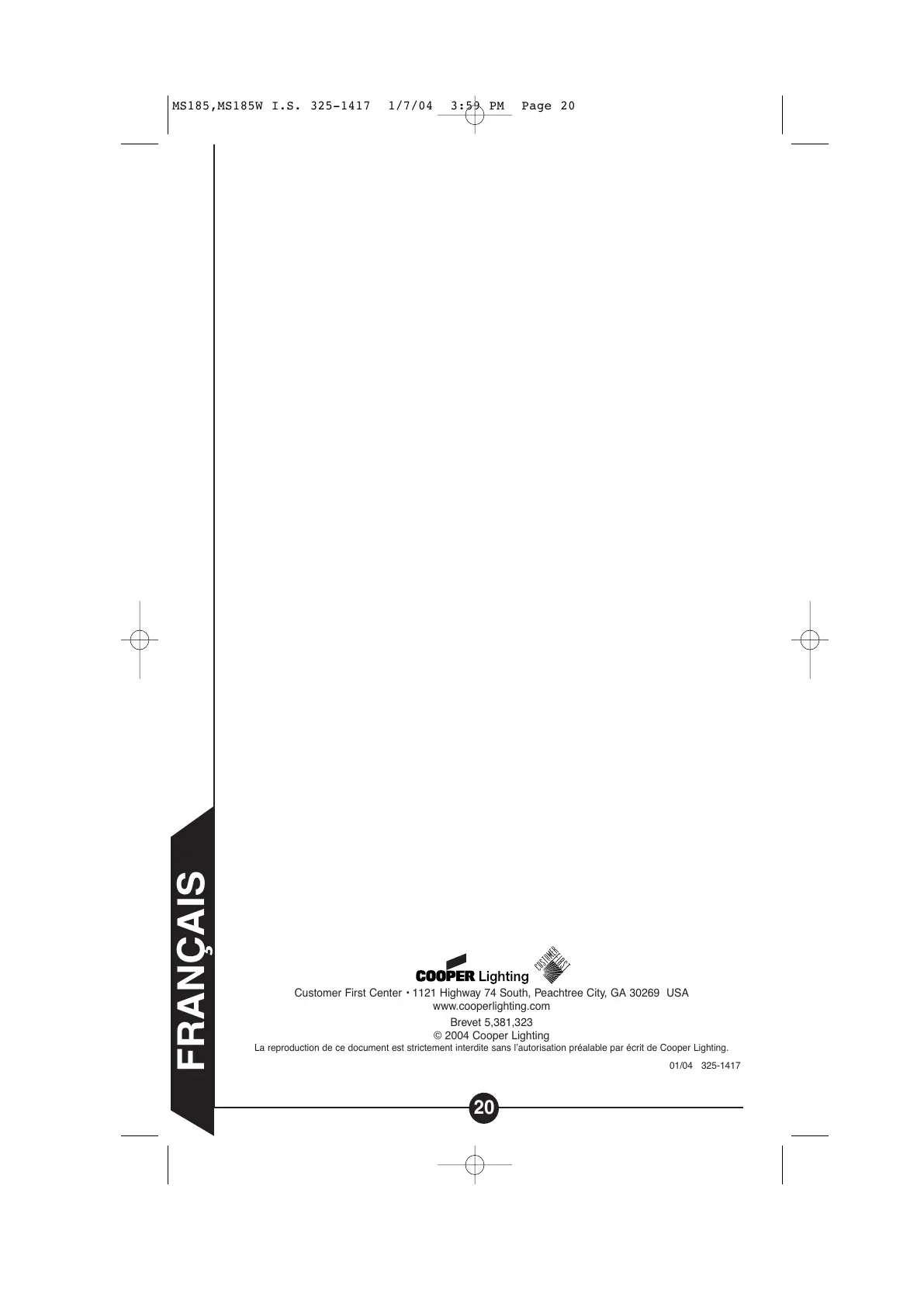 La reproduction de ce document est strictement interdite sans l’autorisation préalable par écrit de Cooper Lighting.