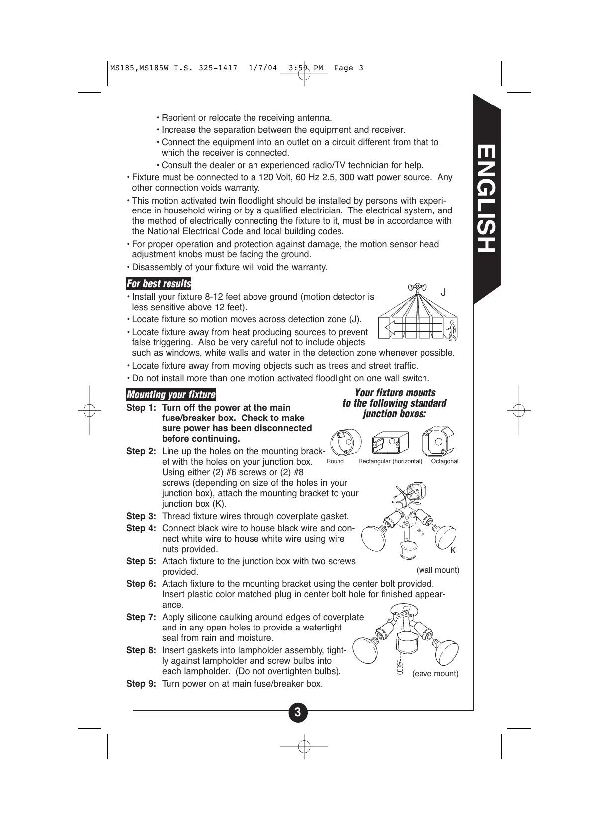 • This motion activated twin floodlight should be installed by persons with experi-