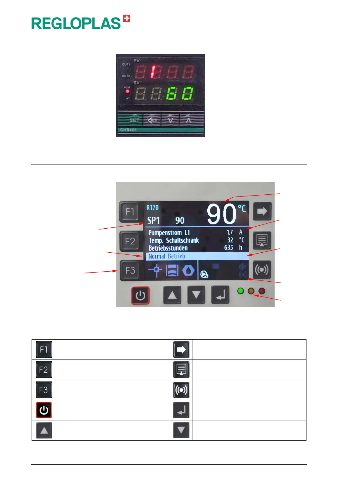 REGLOPLAS 150smart - RT70 Control System; Buttons