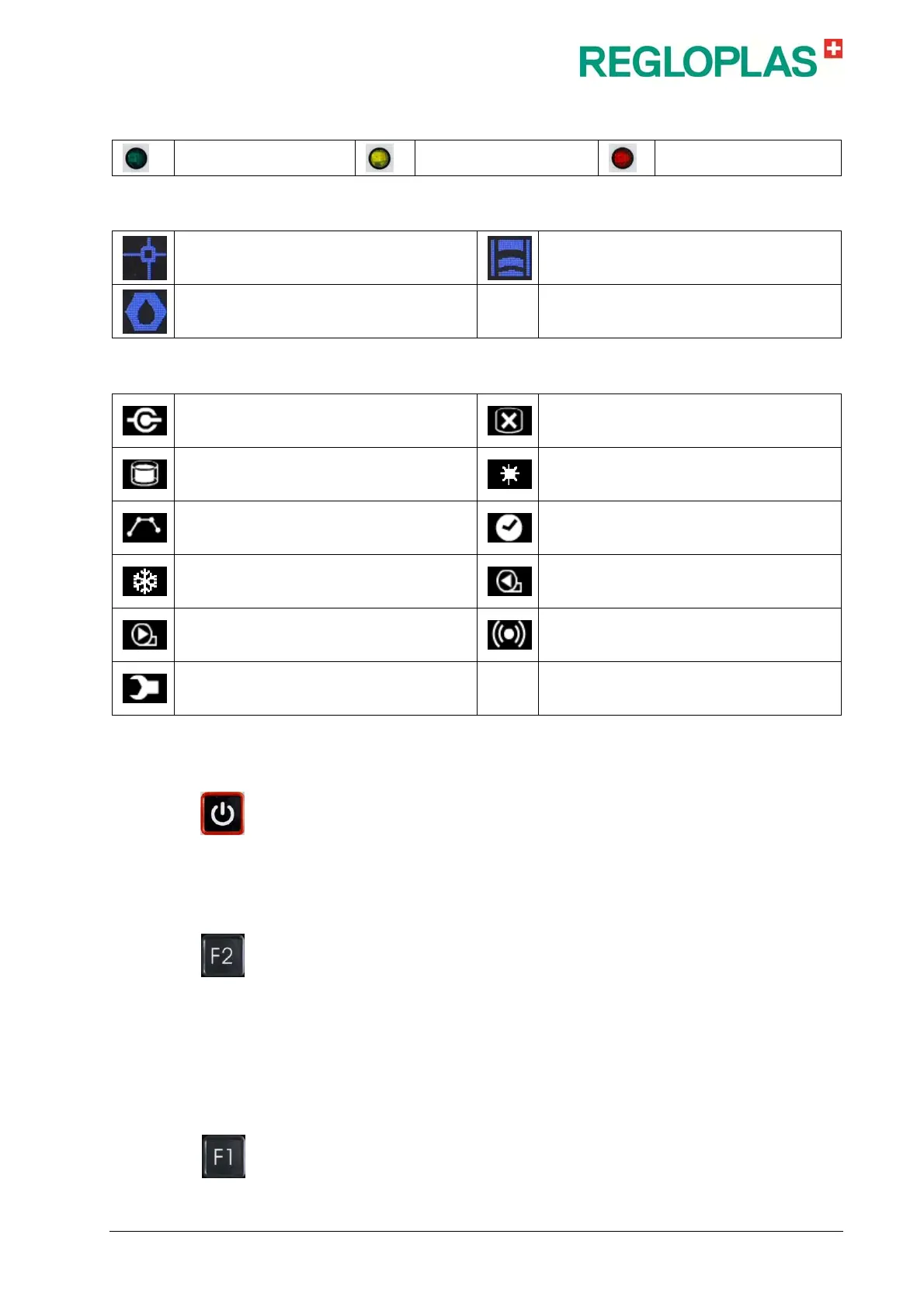 REGLOPLAS 150smart - Status Leds; Device Functions; Symbols; RT70 Operation and Status Displays