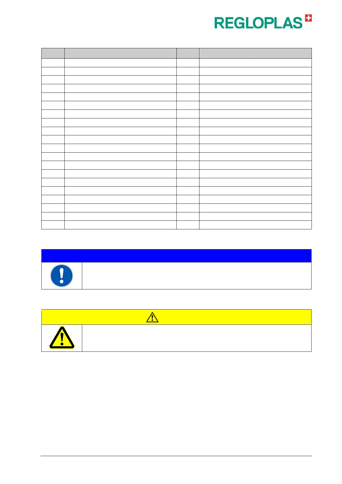 Only authentic (OEM) Regloplas spare parts may be used!