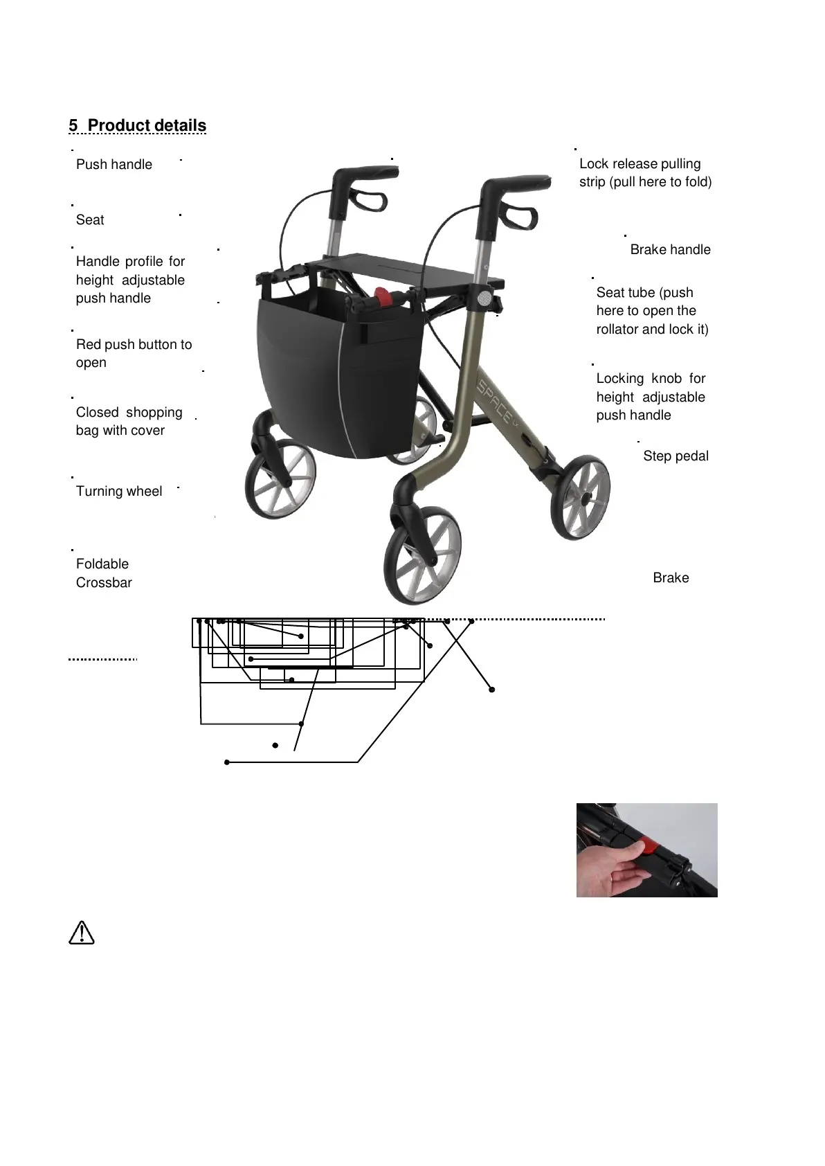 � After unfolding or assembling the rollator always ensure that the seat support is securely locked by