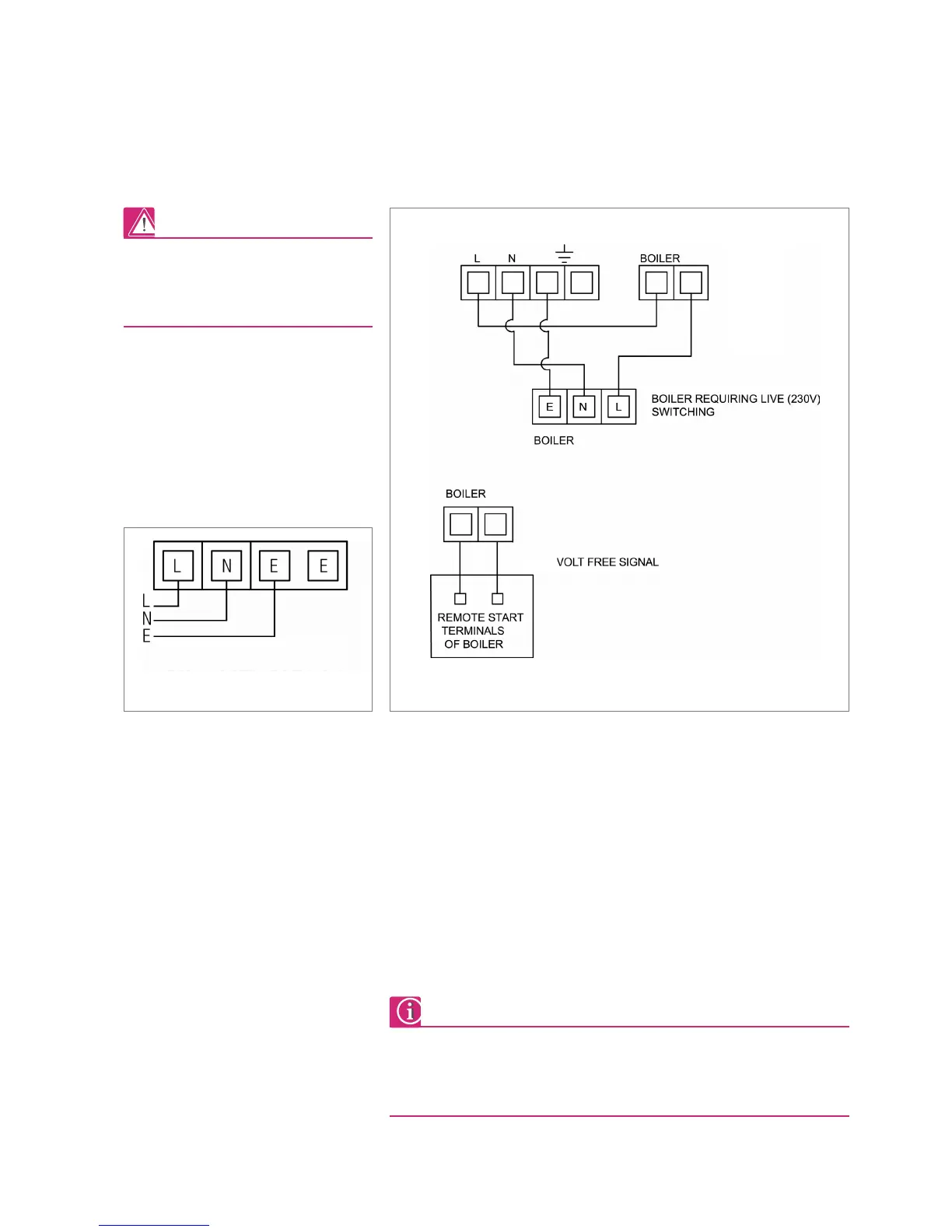 23. Connection of a mains 230v supply and Volt free connection to the boiler