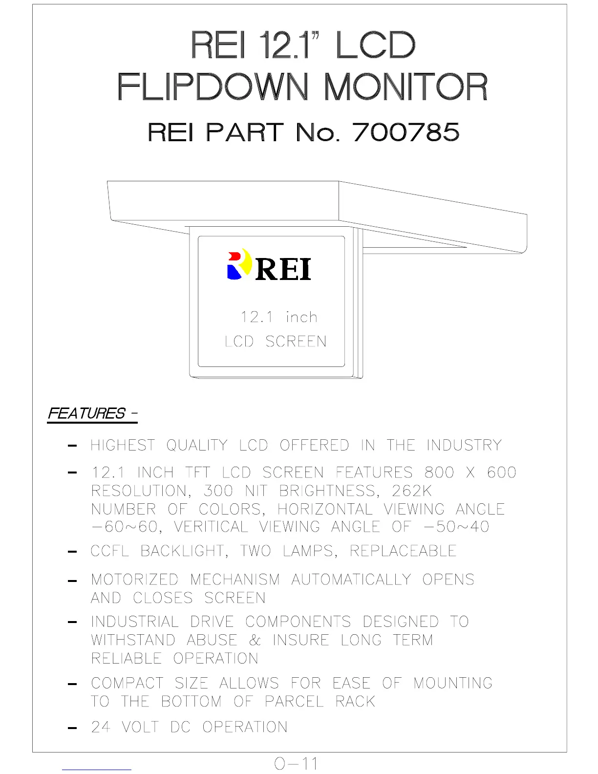 REI system 2000 - REI 12.1” LCD Flipdown Monitor