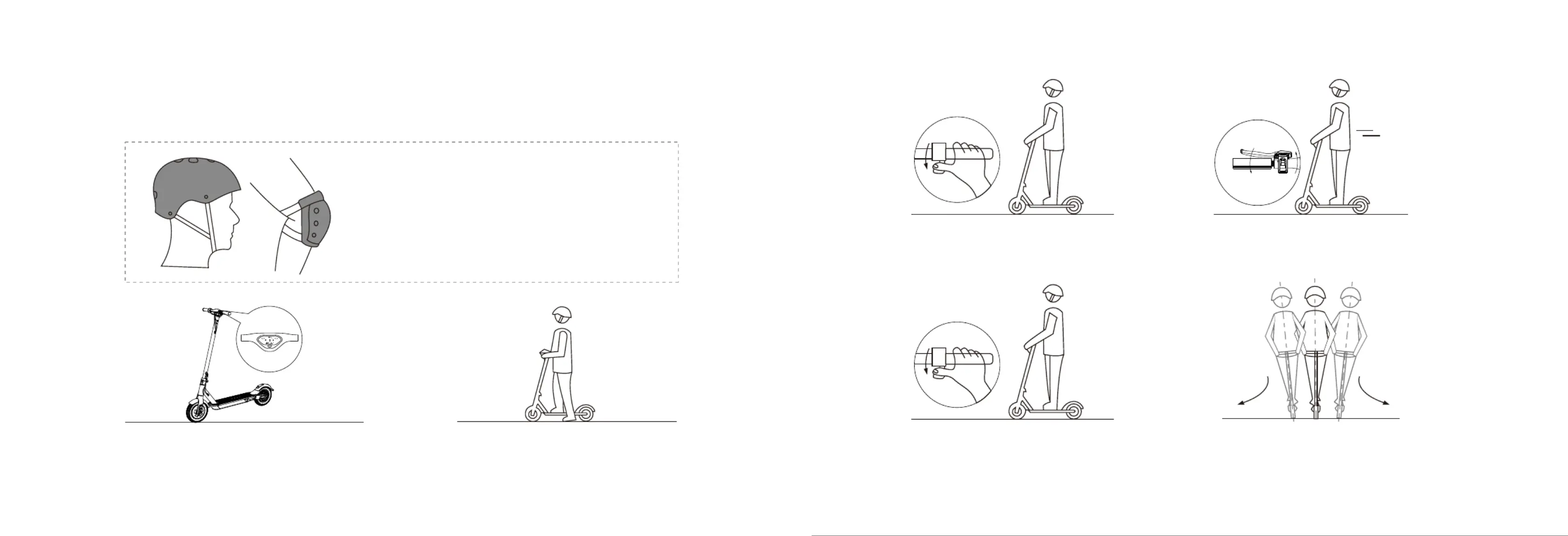 Turn on the power and check the power indicatior.1. 2. One foot stands on the deck, the other foot kicks
