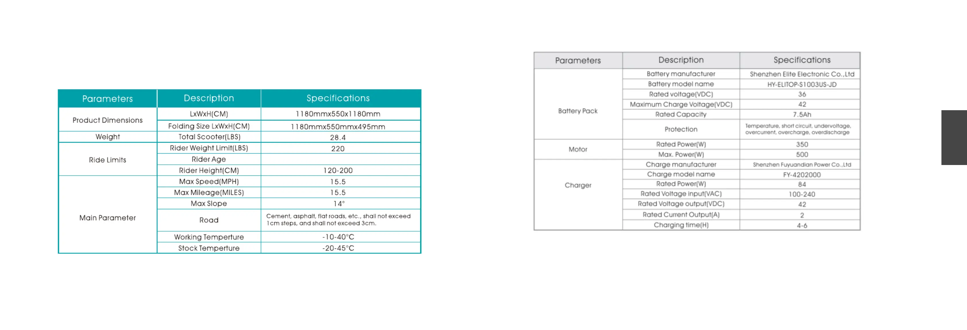 Parameter Table