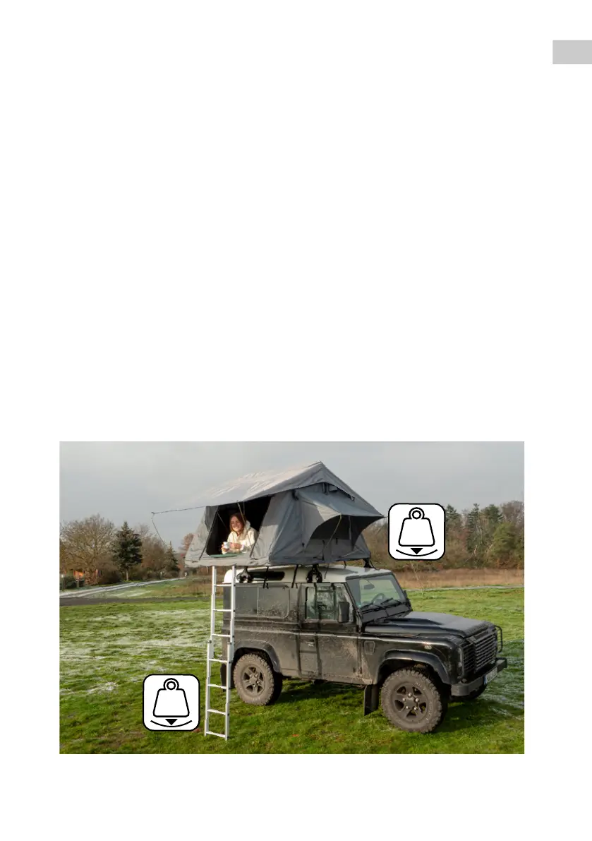 • Das geöffnete Dachzelt bietet Wetterschutz (z.B. Hecktüren sind überdacht)