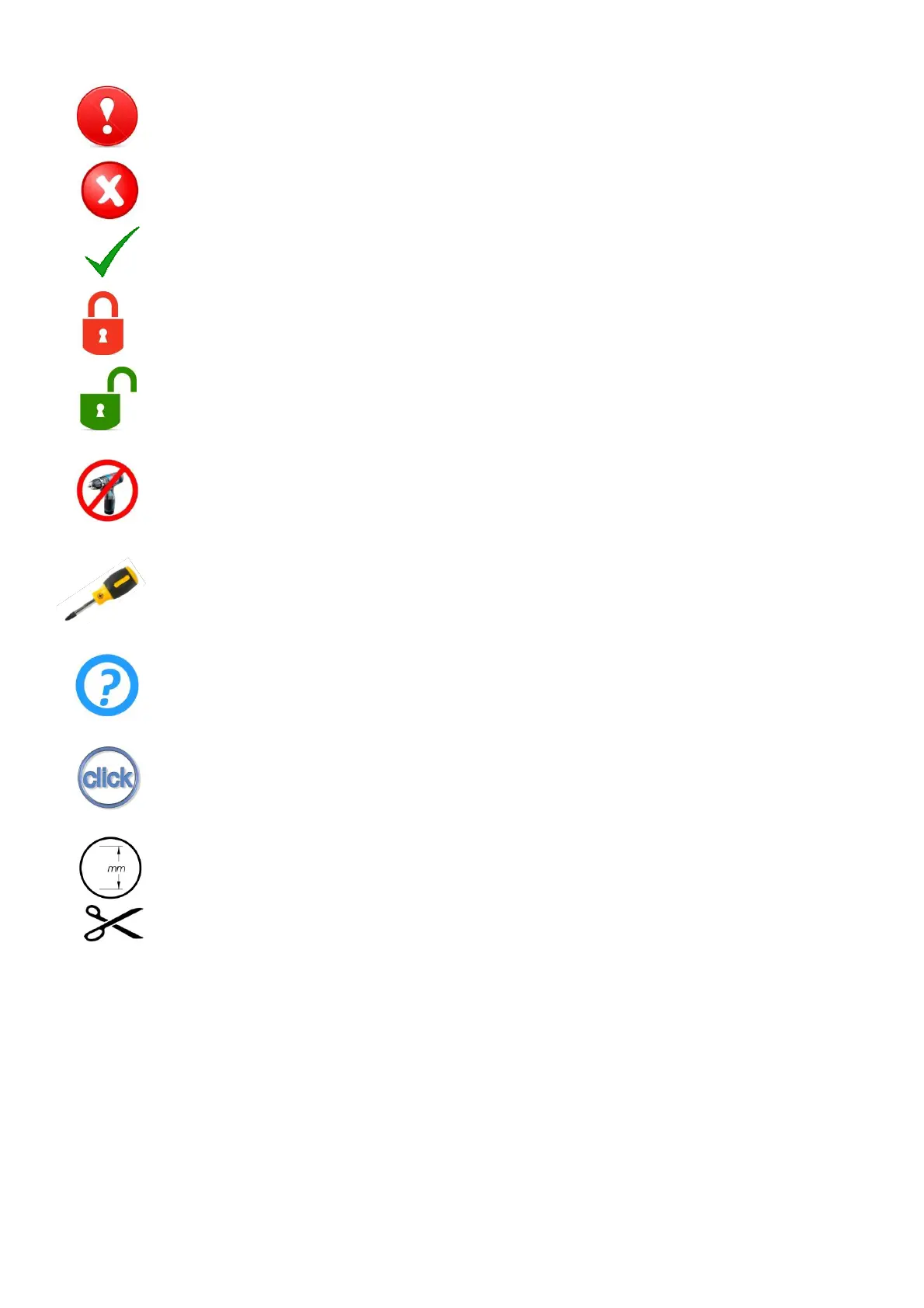Sie die entsprechende Dübel und Schrauben für die Wände. Die Installation muss von einer sachkundigen Person durchgeführt werden.