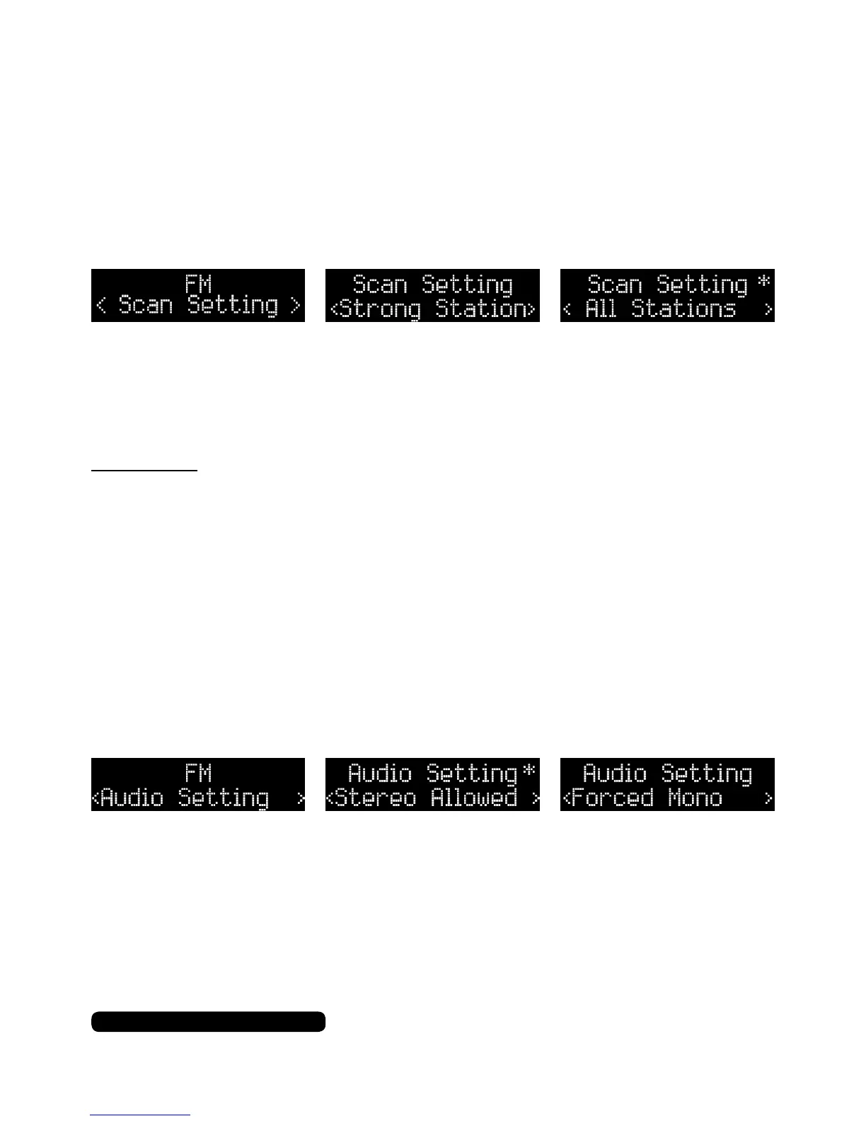 Press the ‘Menu’ button to enter the FM menu. The rst option will