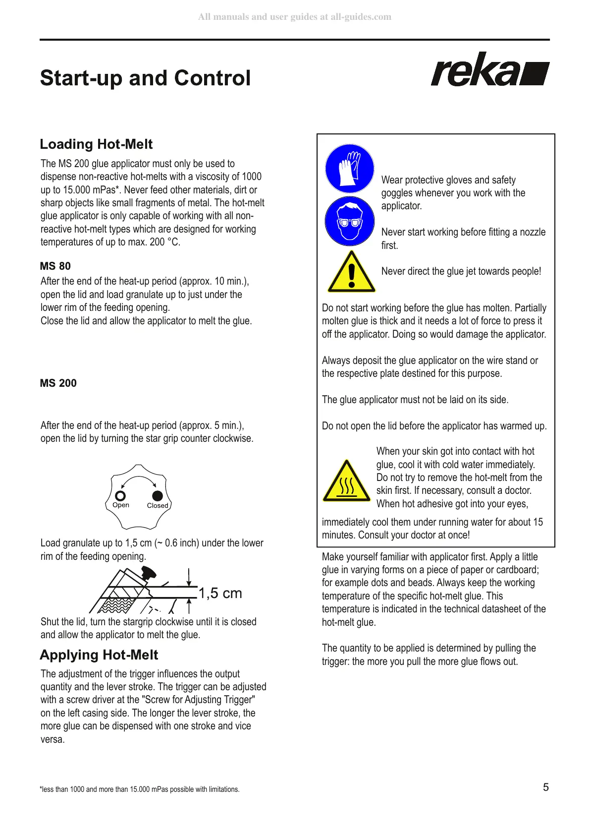 up to 15.000 mPas*. Never feed other materials, dirt or