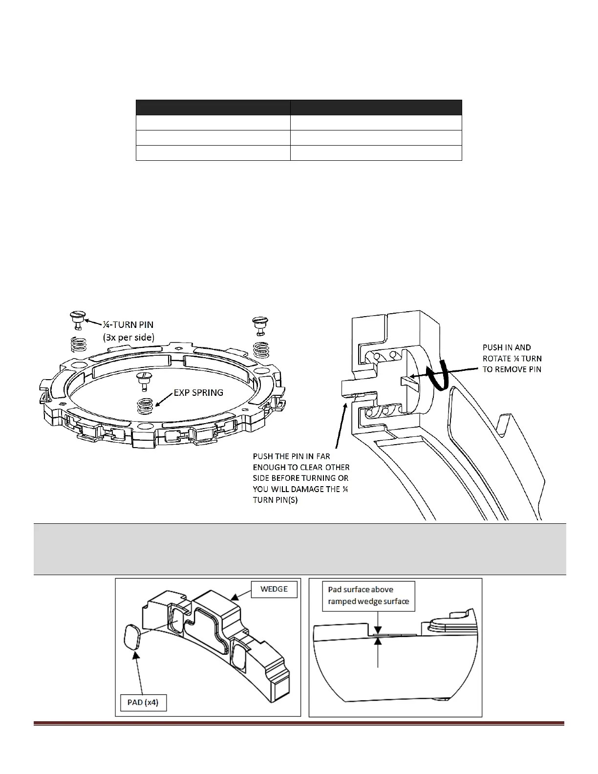 ¼-turn pins from one side of the EXP, replace springs, and re-install ¼-turn pins. Next, flip the EXP disk over