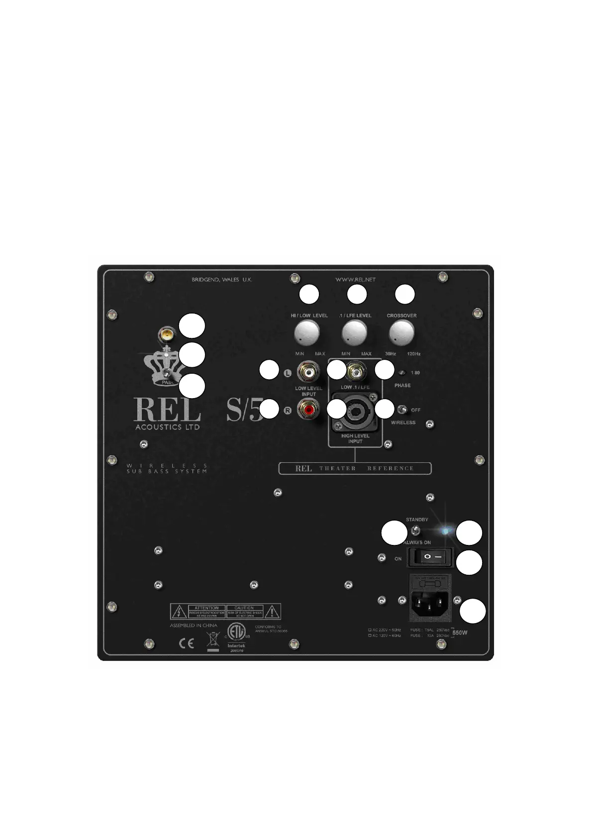 REL Serie S Rear Panel Connection Legend [major heading]