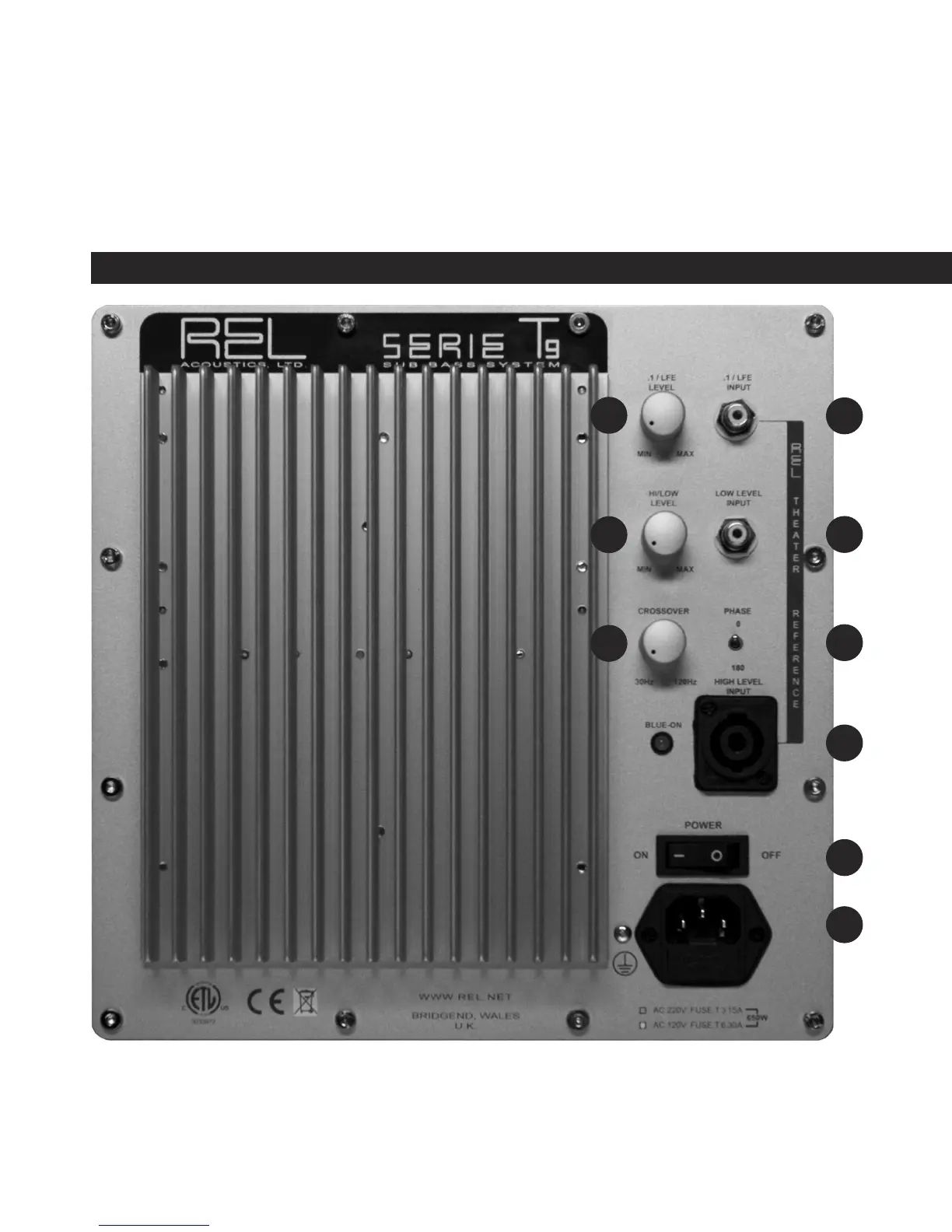 REL Acoustics T-9 - REL Serie T Rear Panel Connection Legend