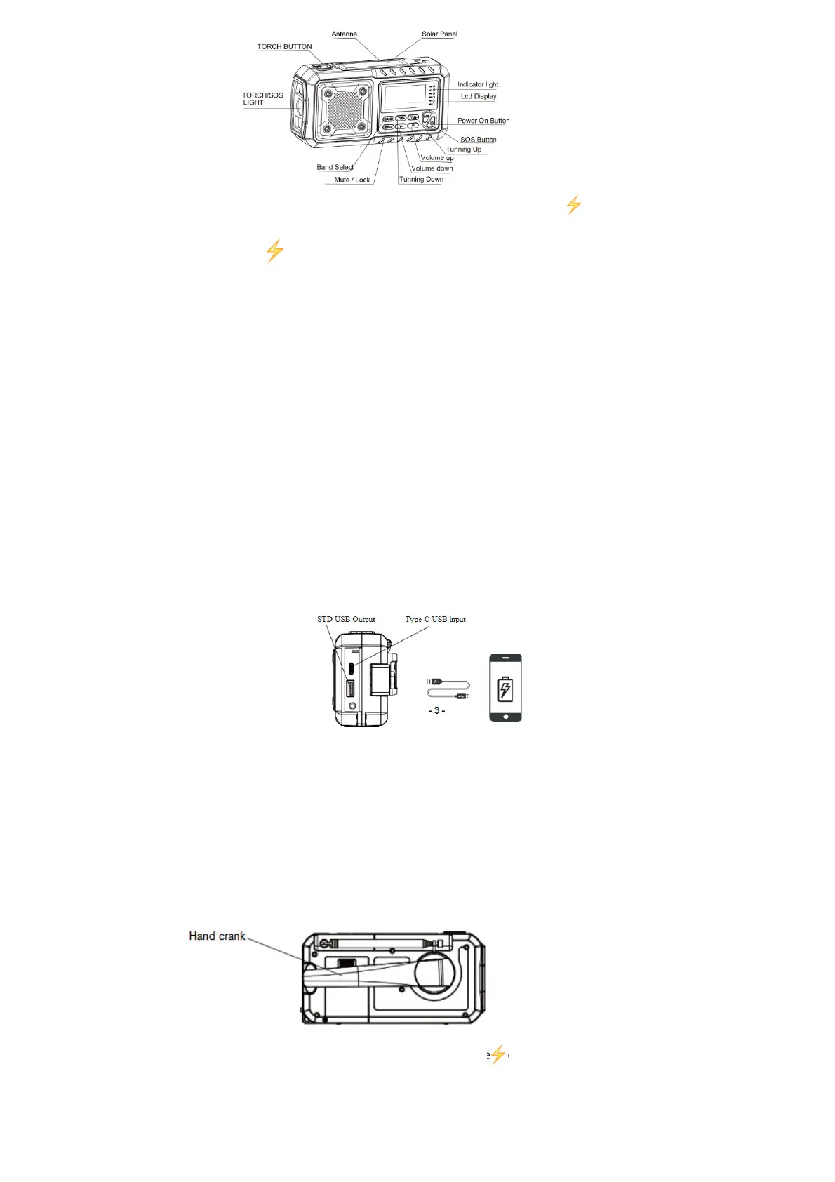 radio will go into charging mode and help charge your devices. Please do not use the radio function while charging external