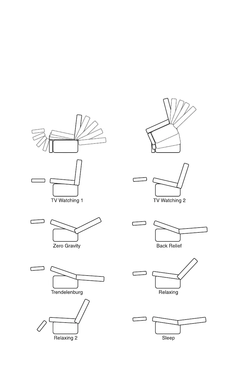 motions: three recline, one lift and combinations of those motions, allowing you