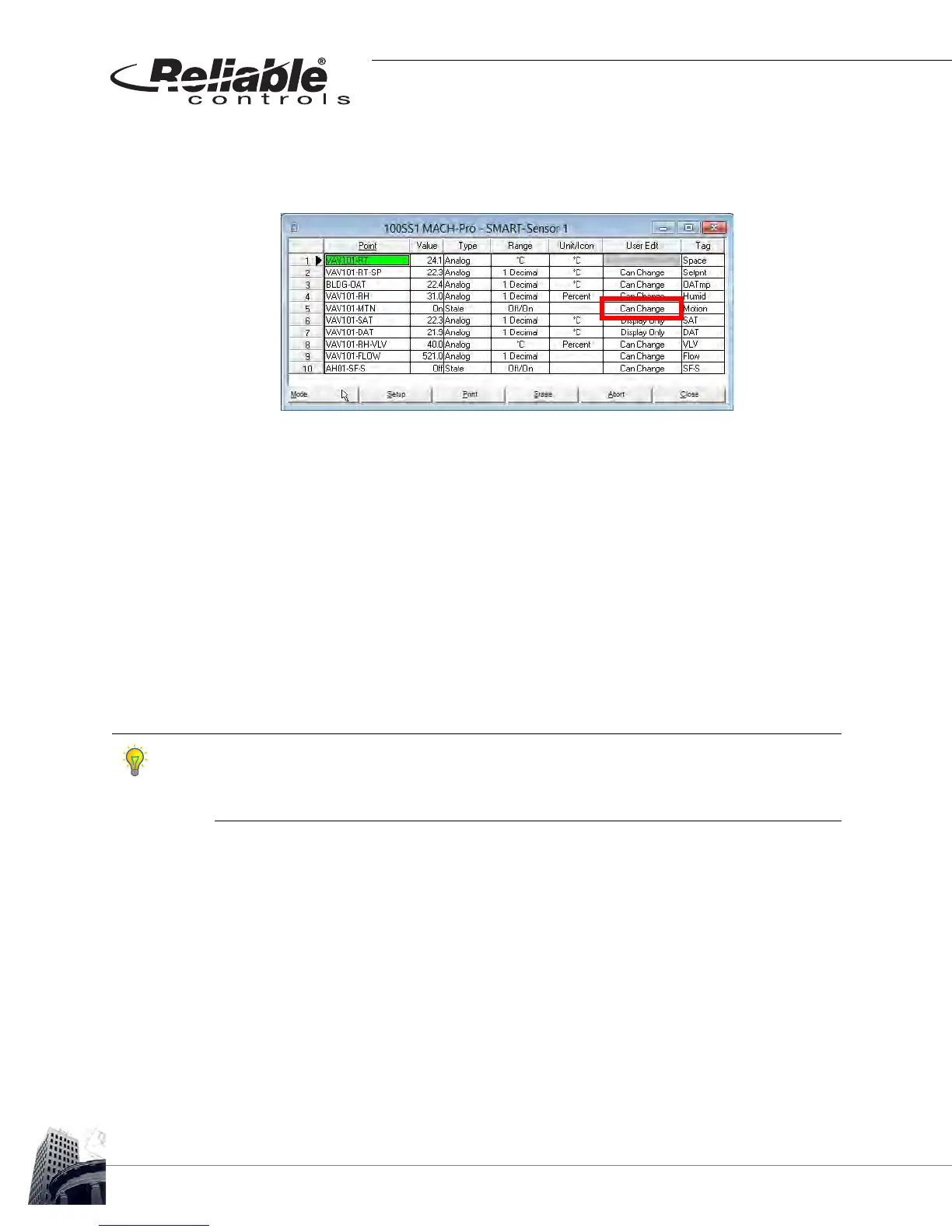 If the User Edit column in the SMART-Sensor worksheet is set to a value of Can Change, an