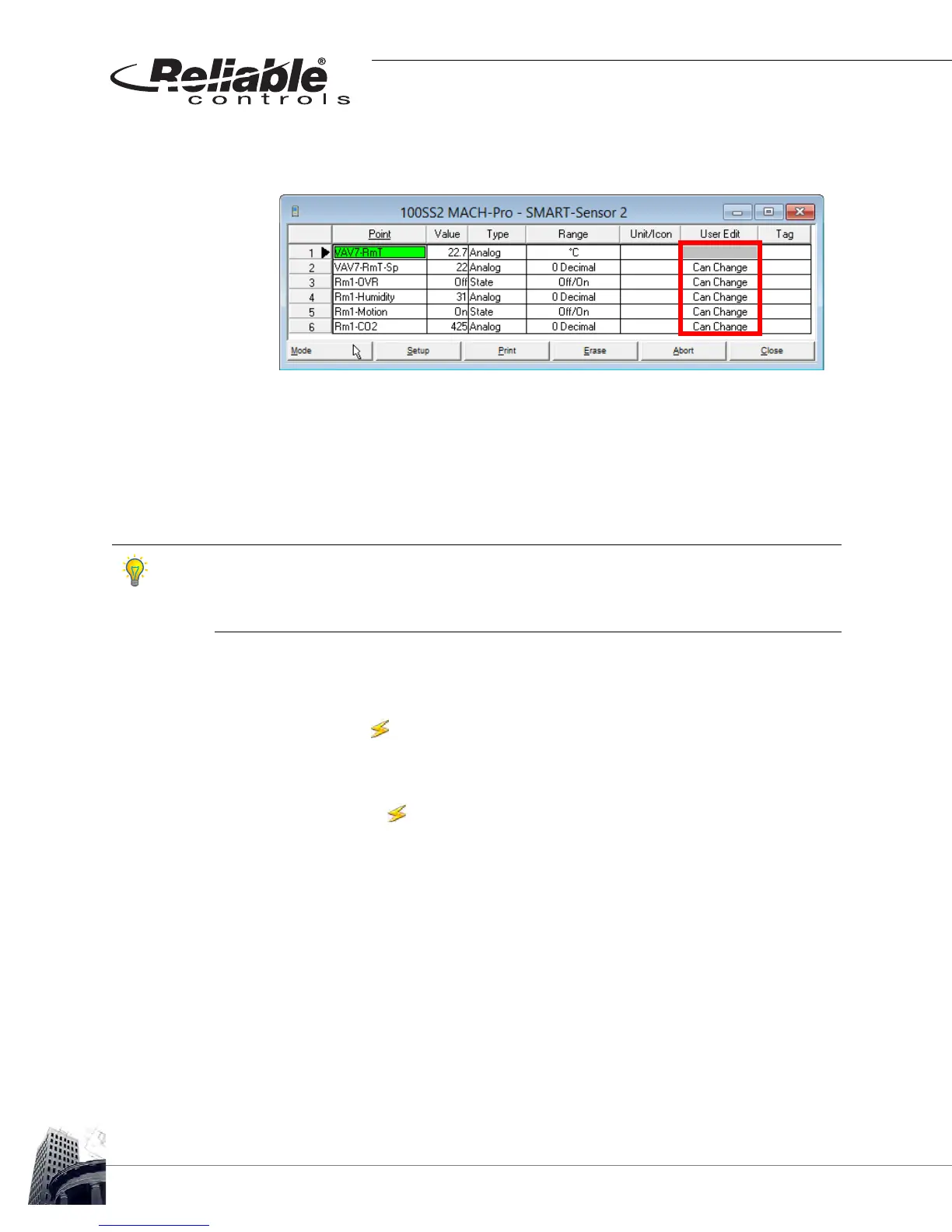 If the User Edit column in the SMART-Sensor worksheet is set to a value of Can Change, an