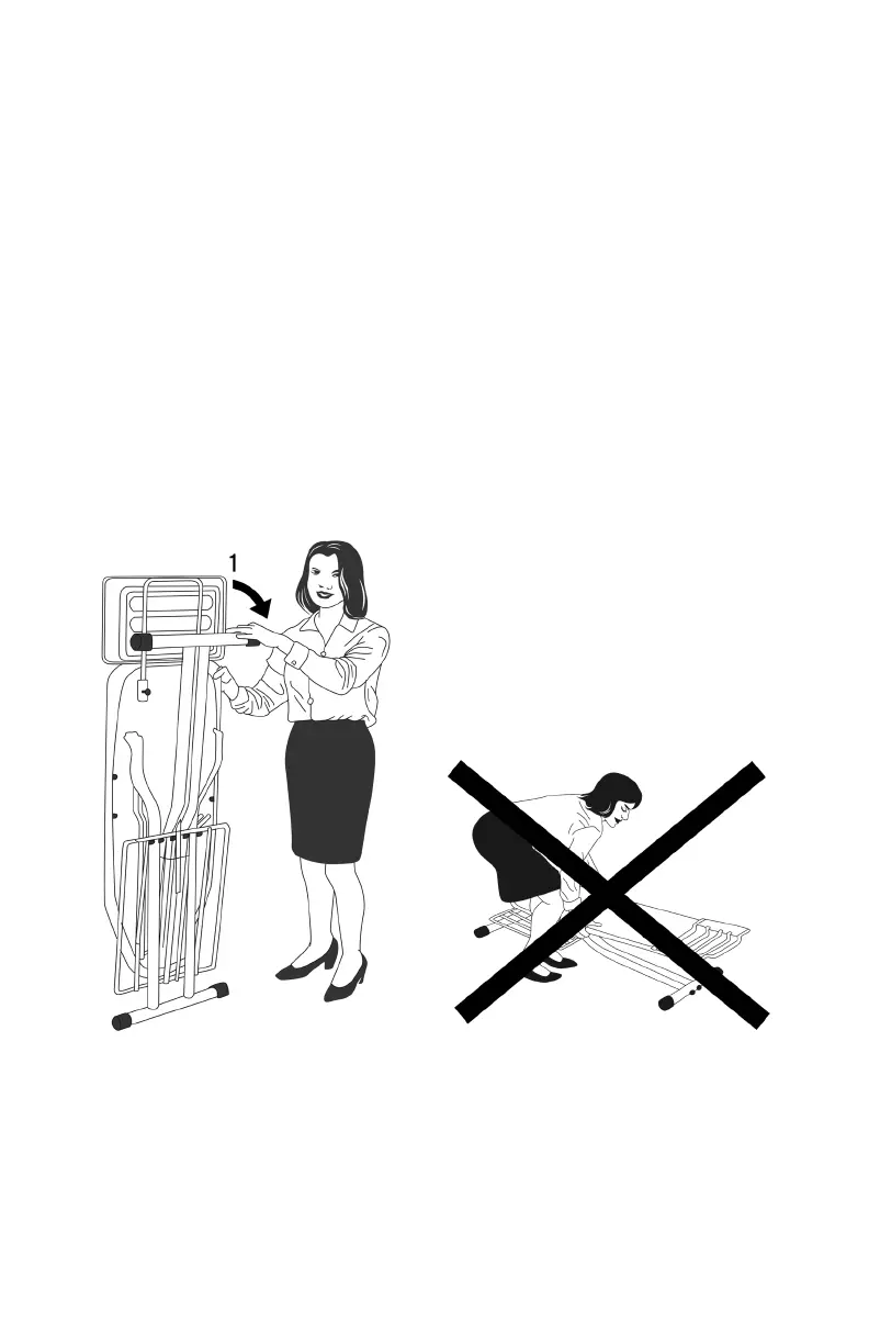 haut. Maintenez la patte avant de la planche à repasser sur le sol avec votre pied.