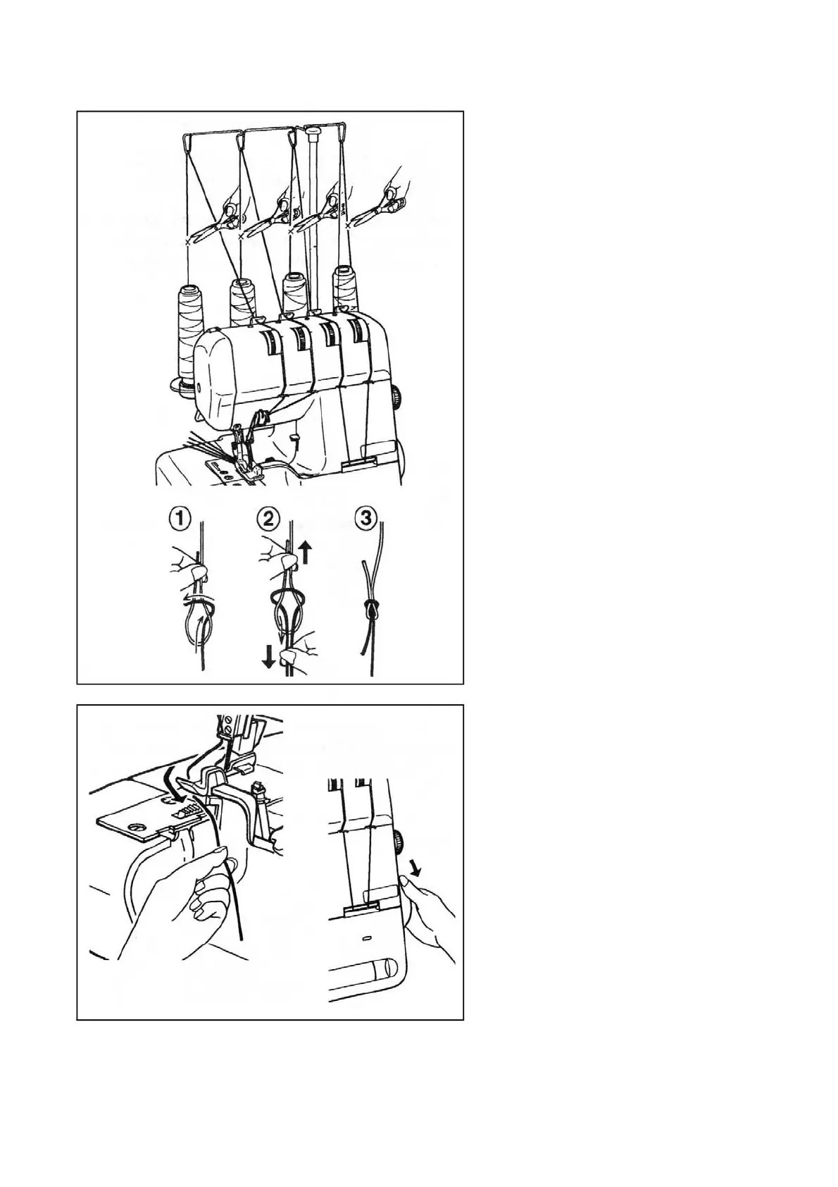 spools. Tie the cut ends thread from